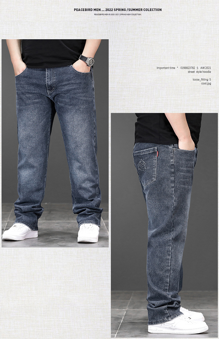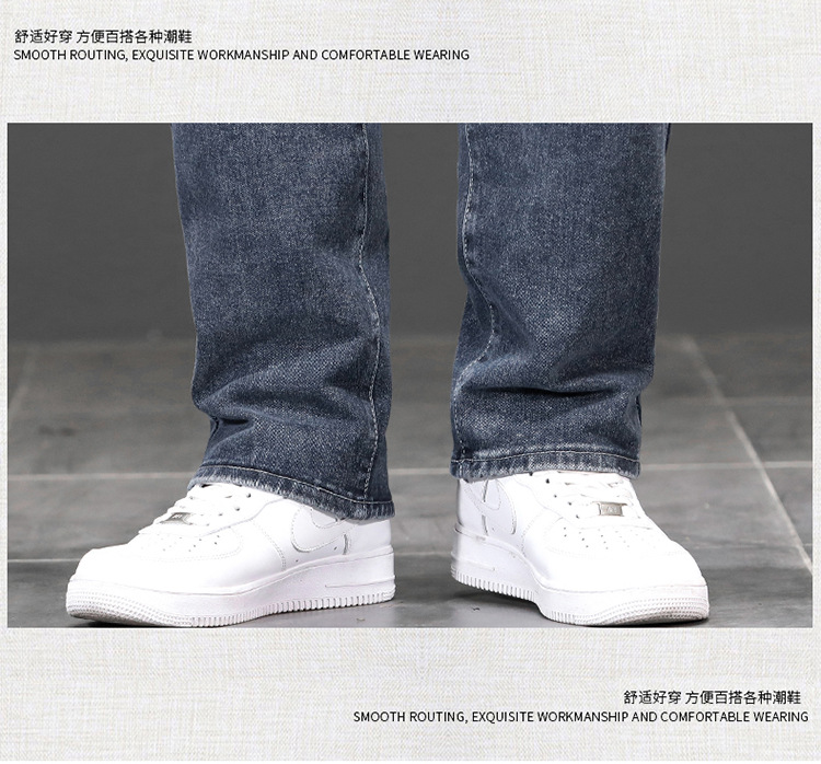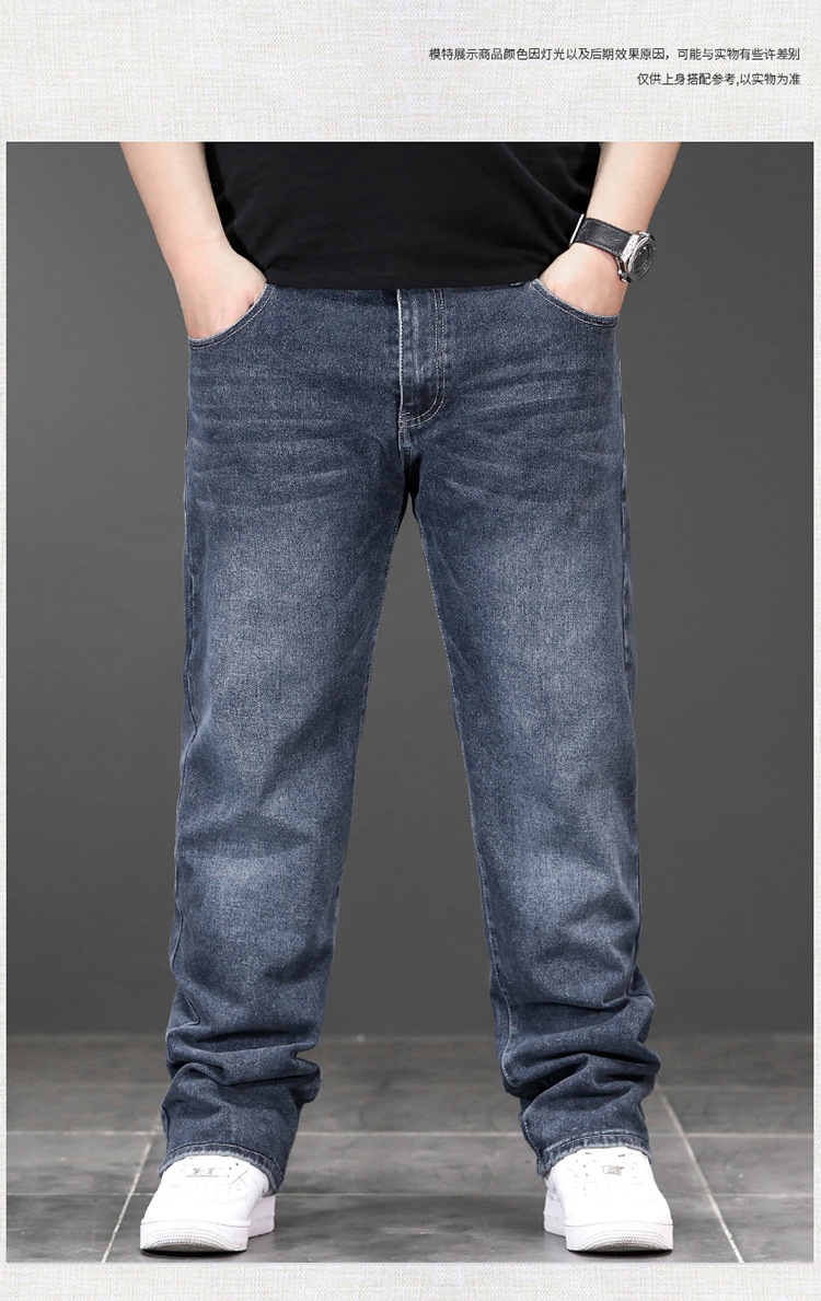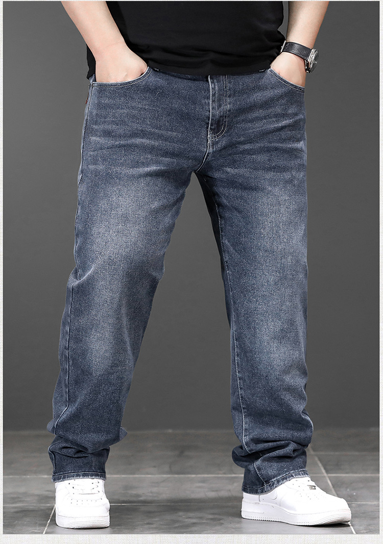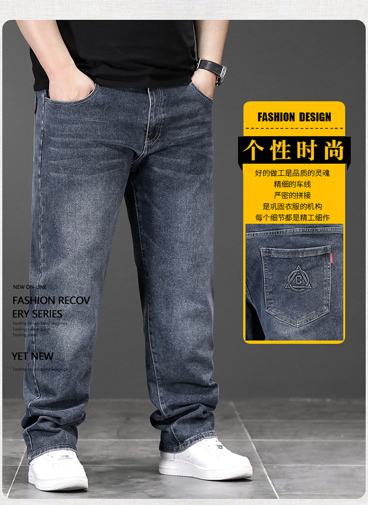 가을과 겨울 하이 퀄리티 플러스 사이즈 청바지 남성용 느슨한 스트레치 바지 스트레이트 레그 플러스 사이즈 뚱뚱한 바지