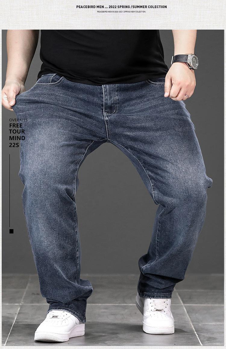 가을과 겨울 하이 퀄리티 플러스 사이즈 청바지 남성용 느슨한 스트레치 바지 스트레이트 레그 플러스 사이즈 뚱뚱한 바지스토어 가기