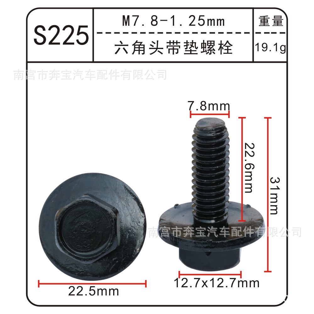 • 패드와 볼트가 있는 S225 육각 헤드