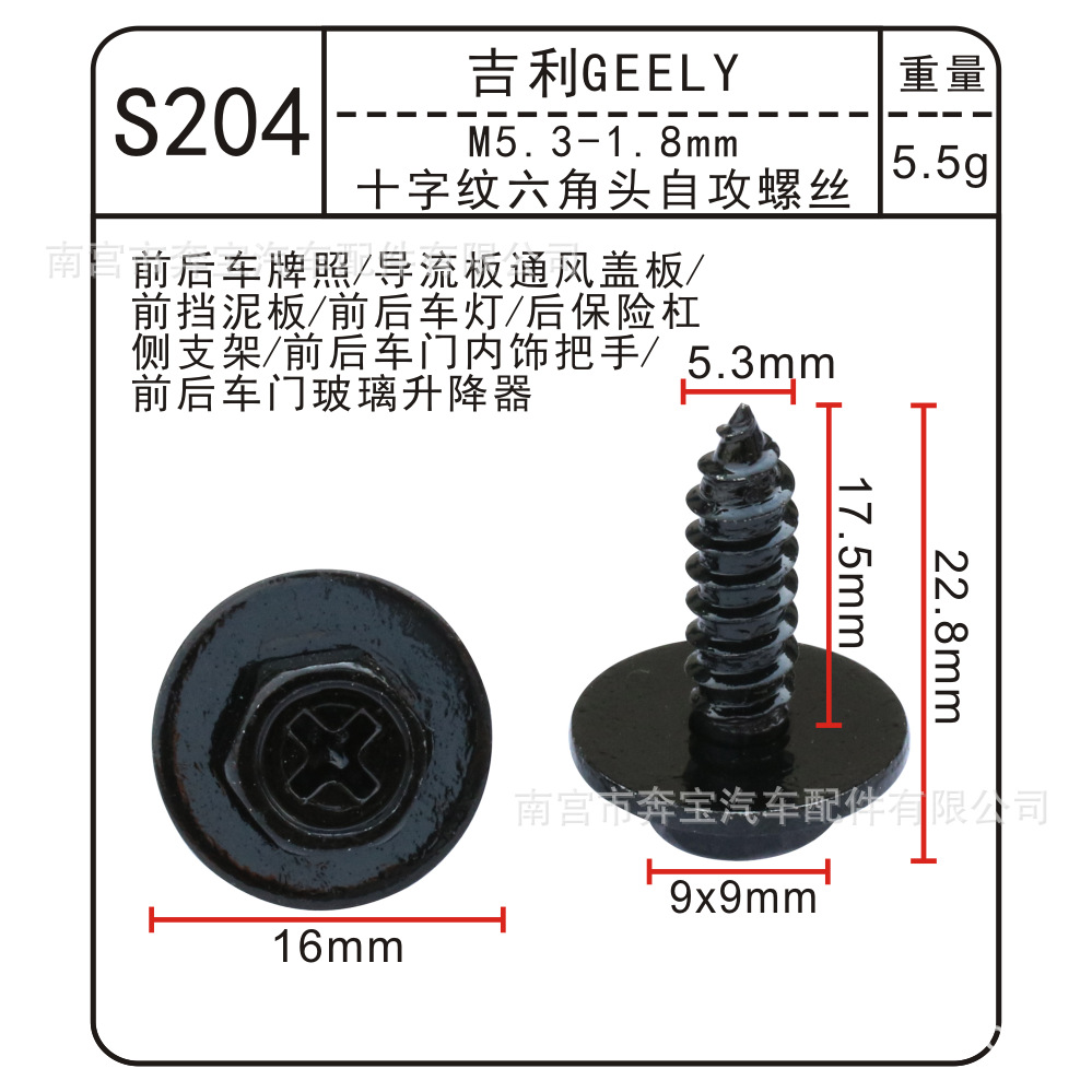 • S204 십자무늬 육각머리 셀프 태핑 나사
