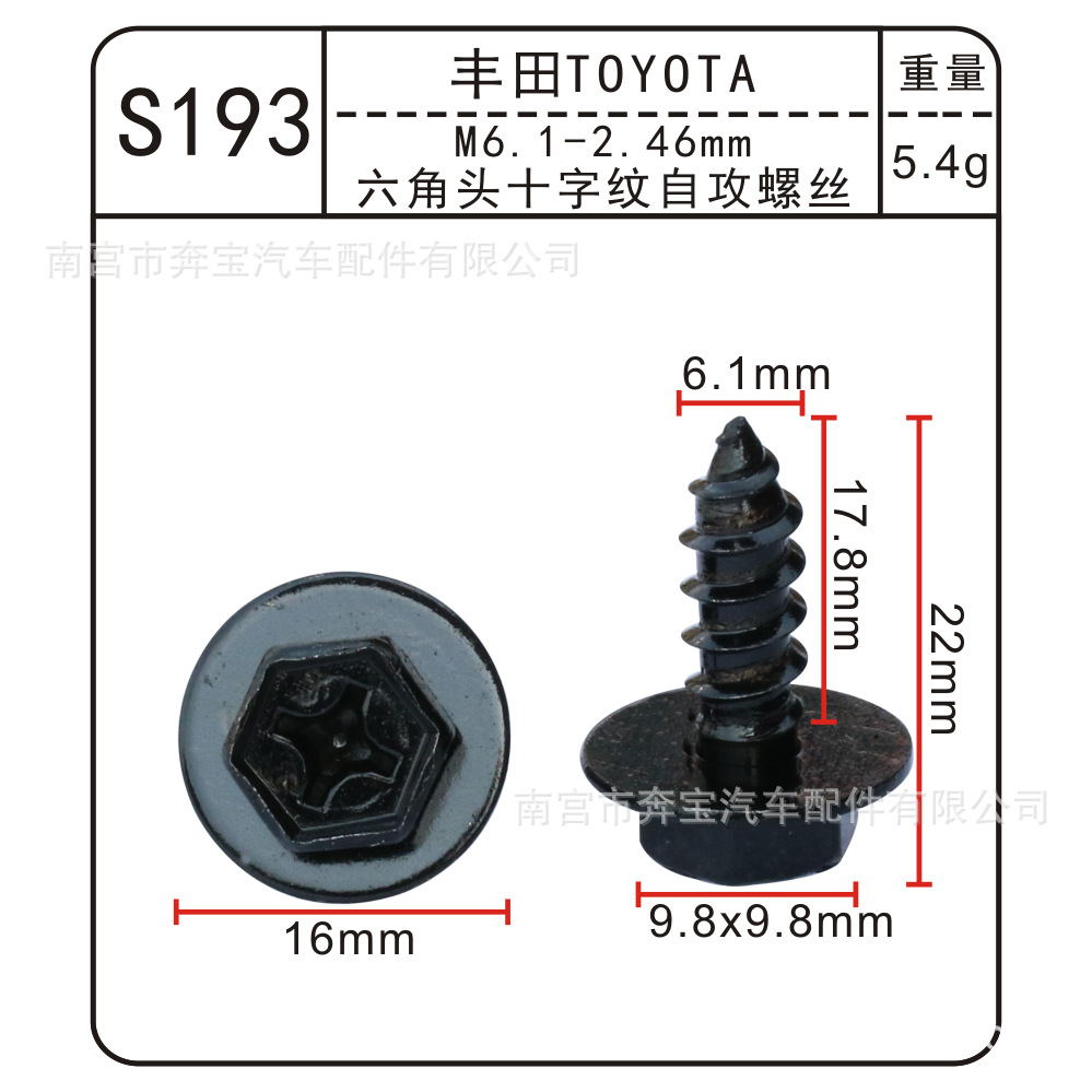 • S185 M6-2.6mm 육각 머리 셀프 태핑 나사