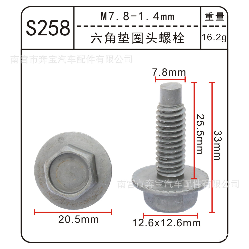 • S258 육각 패드 둥근 머리 볼트