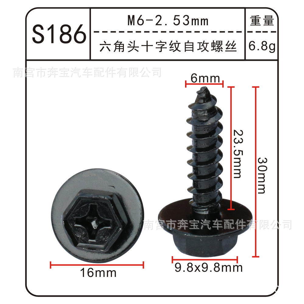 • S181 M6-2.5mm 육각 머리 십자 패턴 셀프 태핑 나사