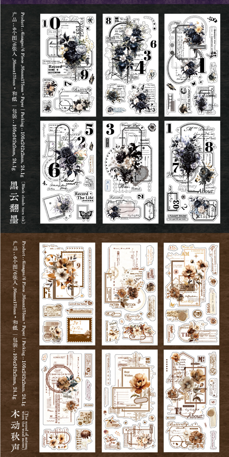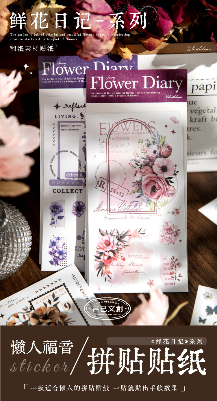 꽃 일기 및 종이 손 계정 재료 스티커 복고풍 꽃 테두리 콜라주 손 계정 DIY 장식 기본 스티커스토어 가기