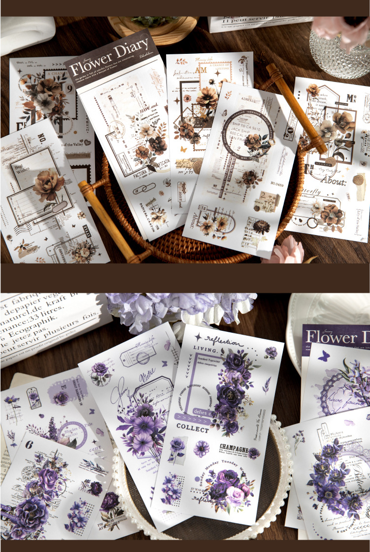꽃 일기 및 종이 손 계정 재료 스티커 복고풍 꽃 테두리 콜라주 손 계정 DIY 장식 기본 스티커