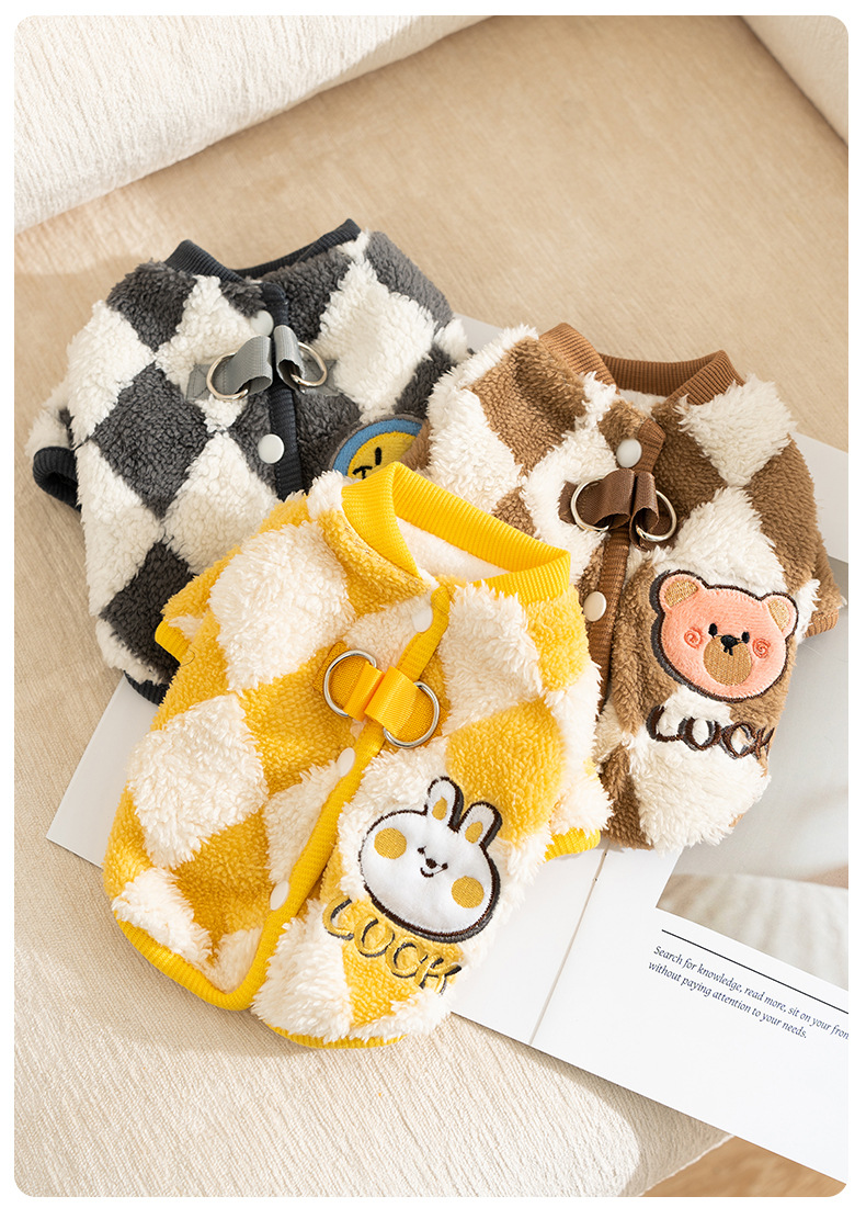 겨울 따뜻한 강아지 테디 비콘 강아지 강아지 강아지 새끼 고양이 체커 보드 애완 동물 옷 견인 두 다리 면 패딩 애완 동물 옷스토어 가기