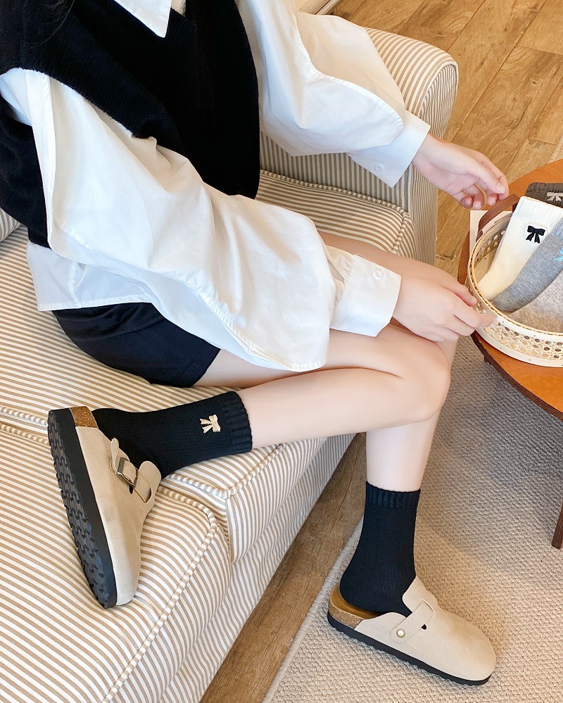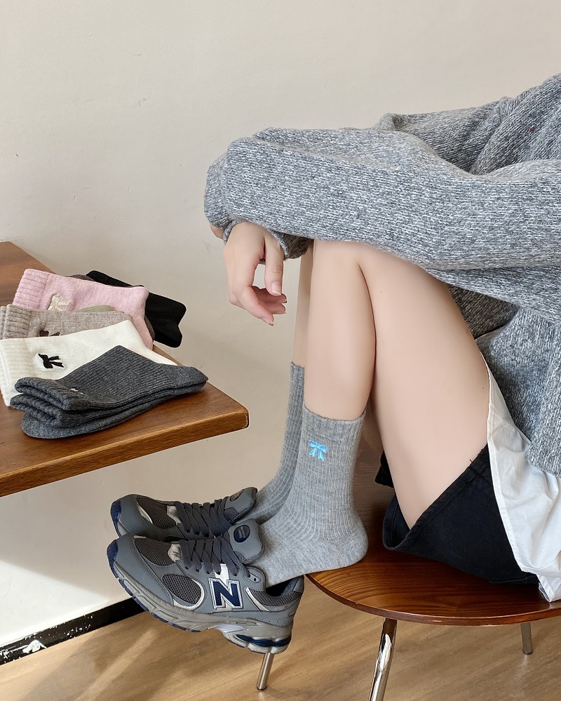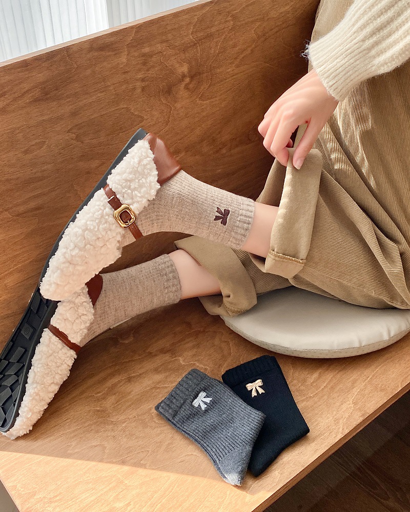활 매듭 자수 양말 어린이 중간 길이 양말 가을과 겨울 두꺼운 따뜻한 Ins 트렌디 한 일본 뼈없는 코일 스타킹스토어 가기