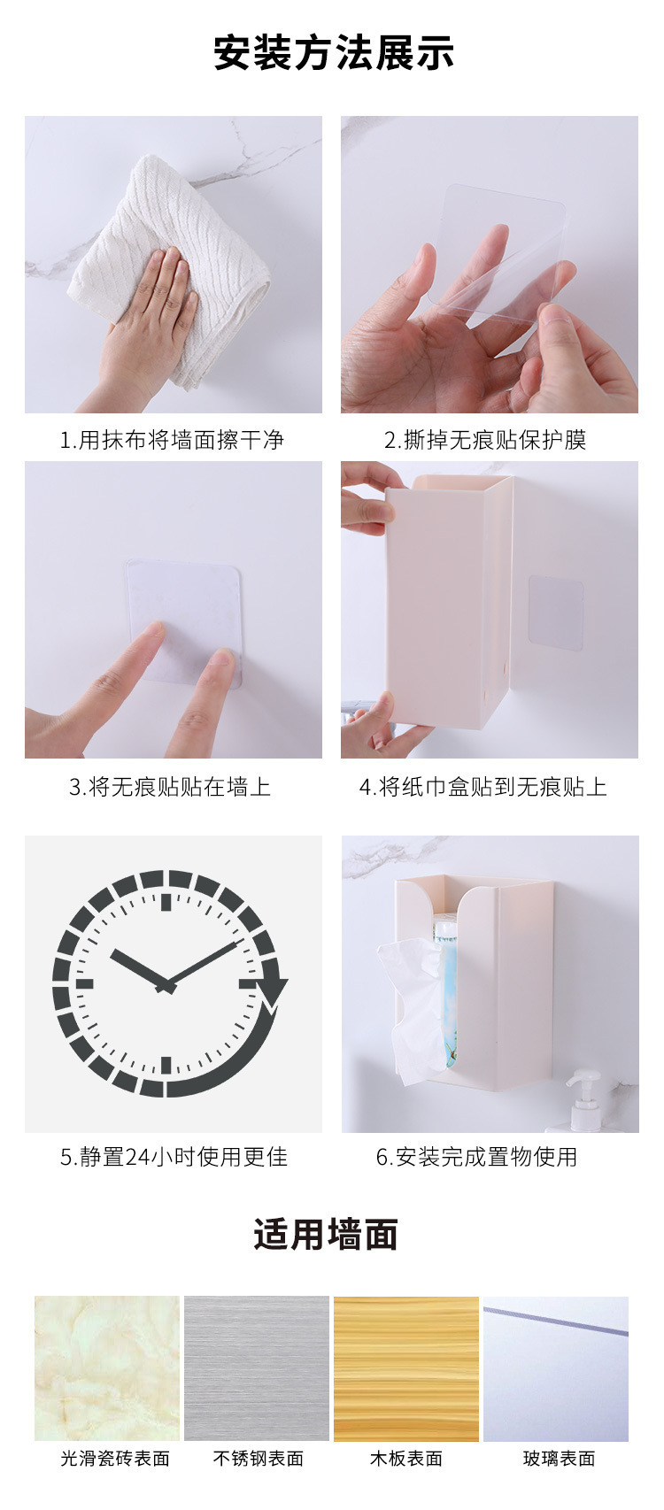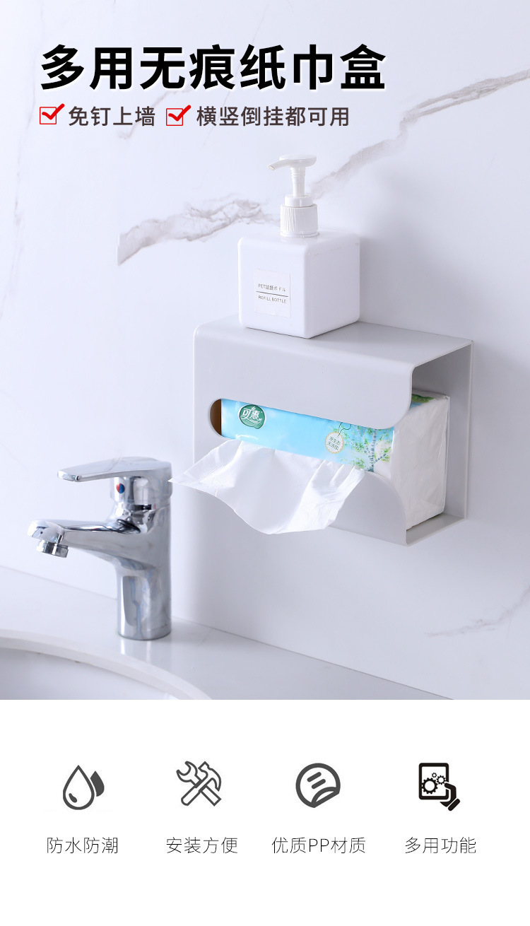원활한 스티커 종이 상자 벽걸이 티슈 홀더 창조적 인 간단한 플라스틱 다기능 화장실 티슈 박스스토어 가기