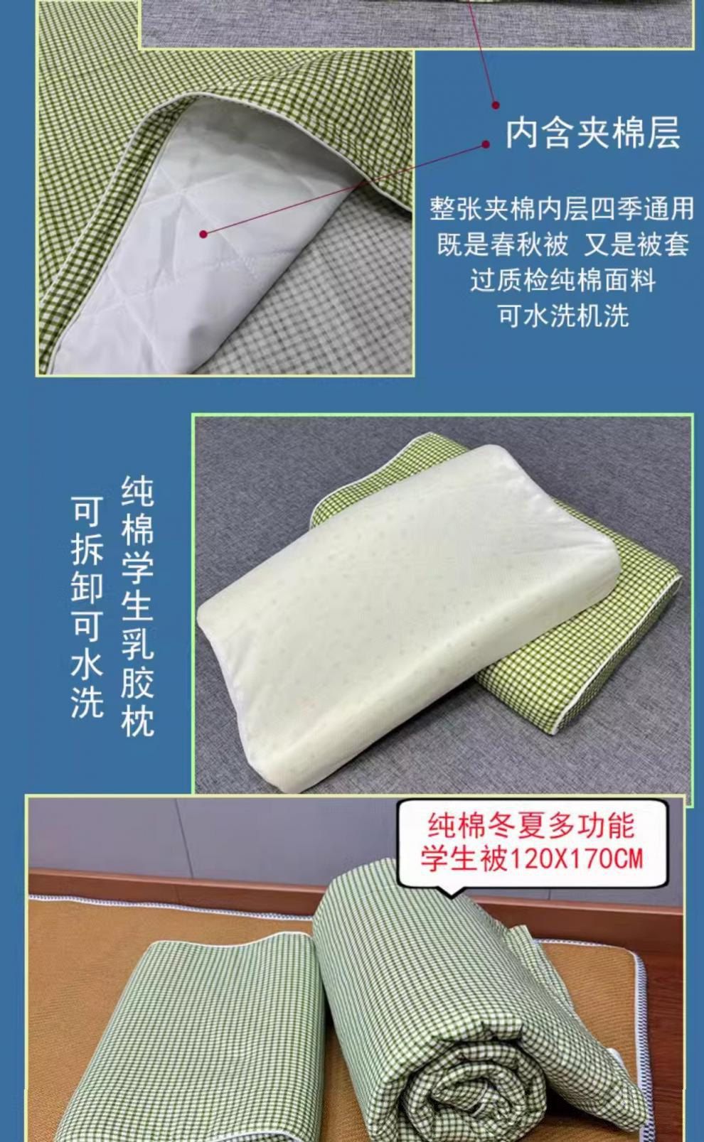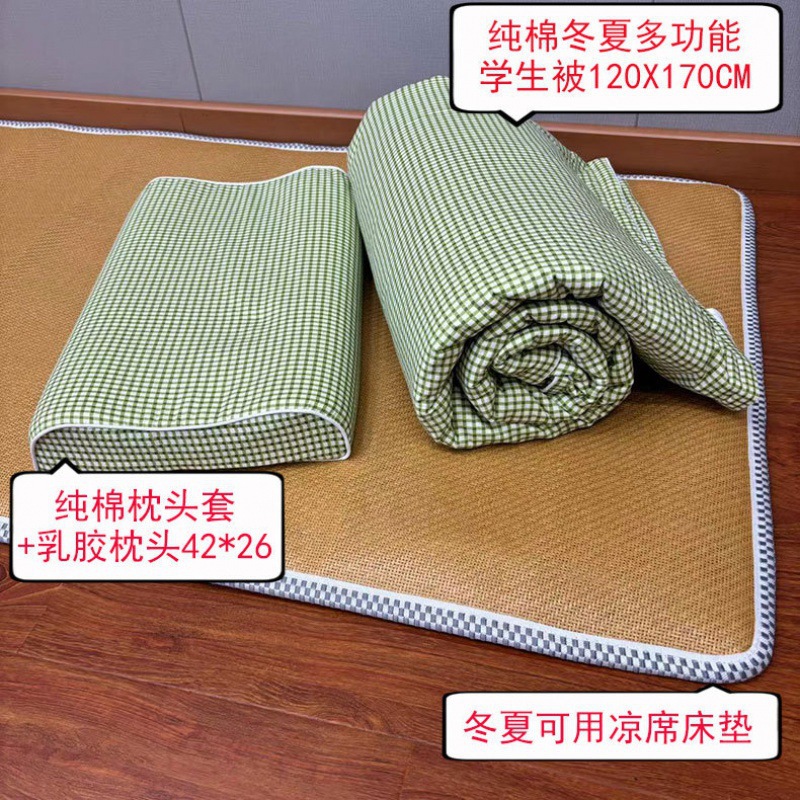 • 붉은덩굴 학생 매트리스 베개 여름 시원한 이불커버 (녹색 체크무늬 3종세트)