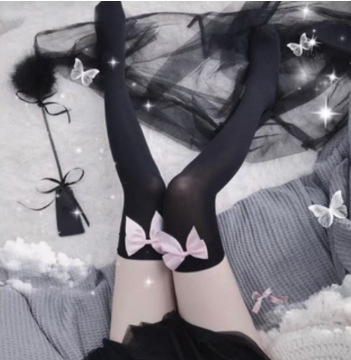 JK 초박형 레이스 롱 튜브 오버 더니 양말 일본식 JK 보우 블랙 스타킹 로리타 스타킹스토어 가기