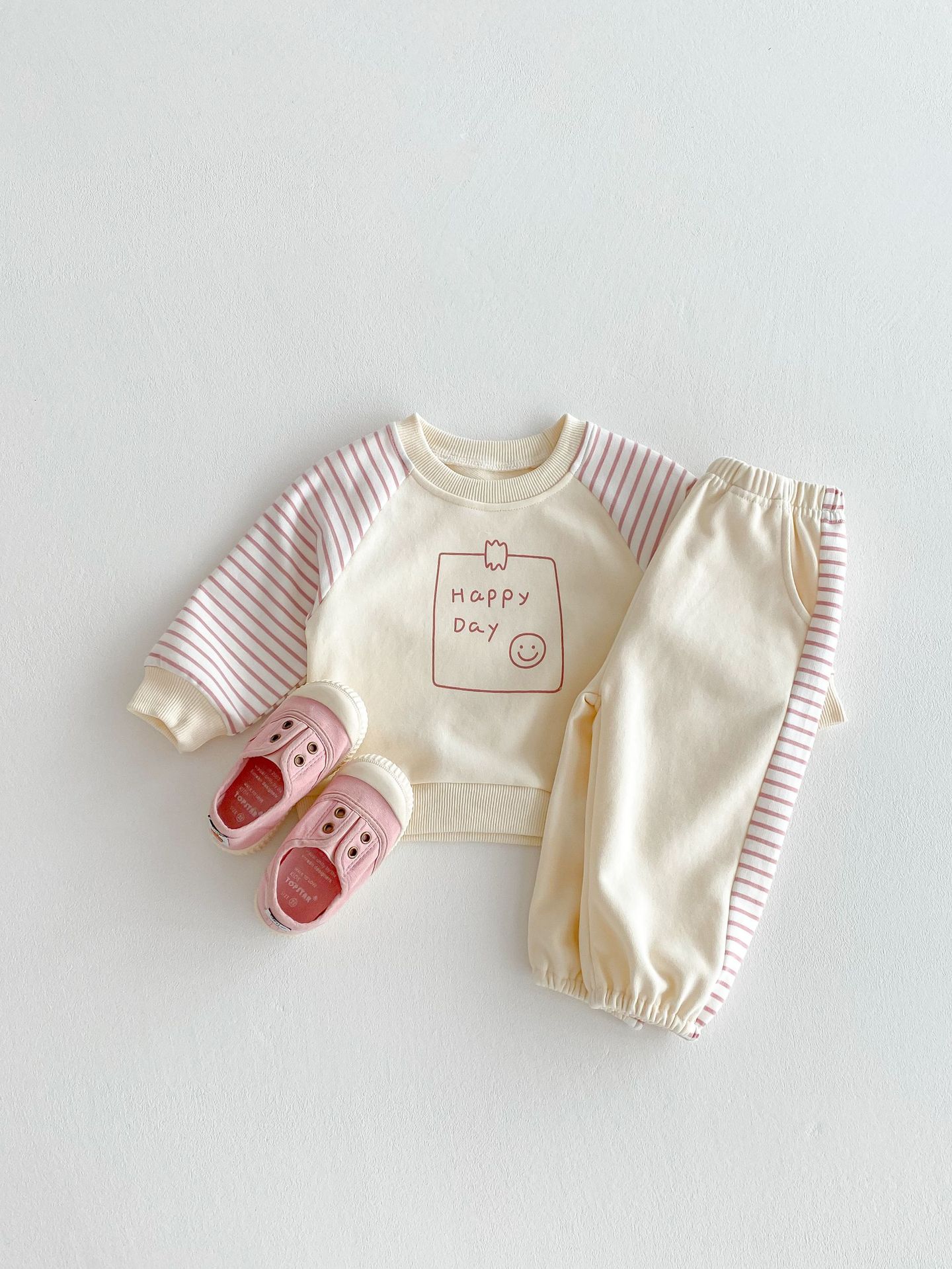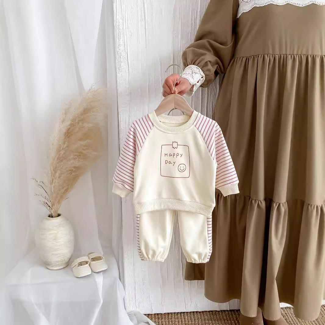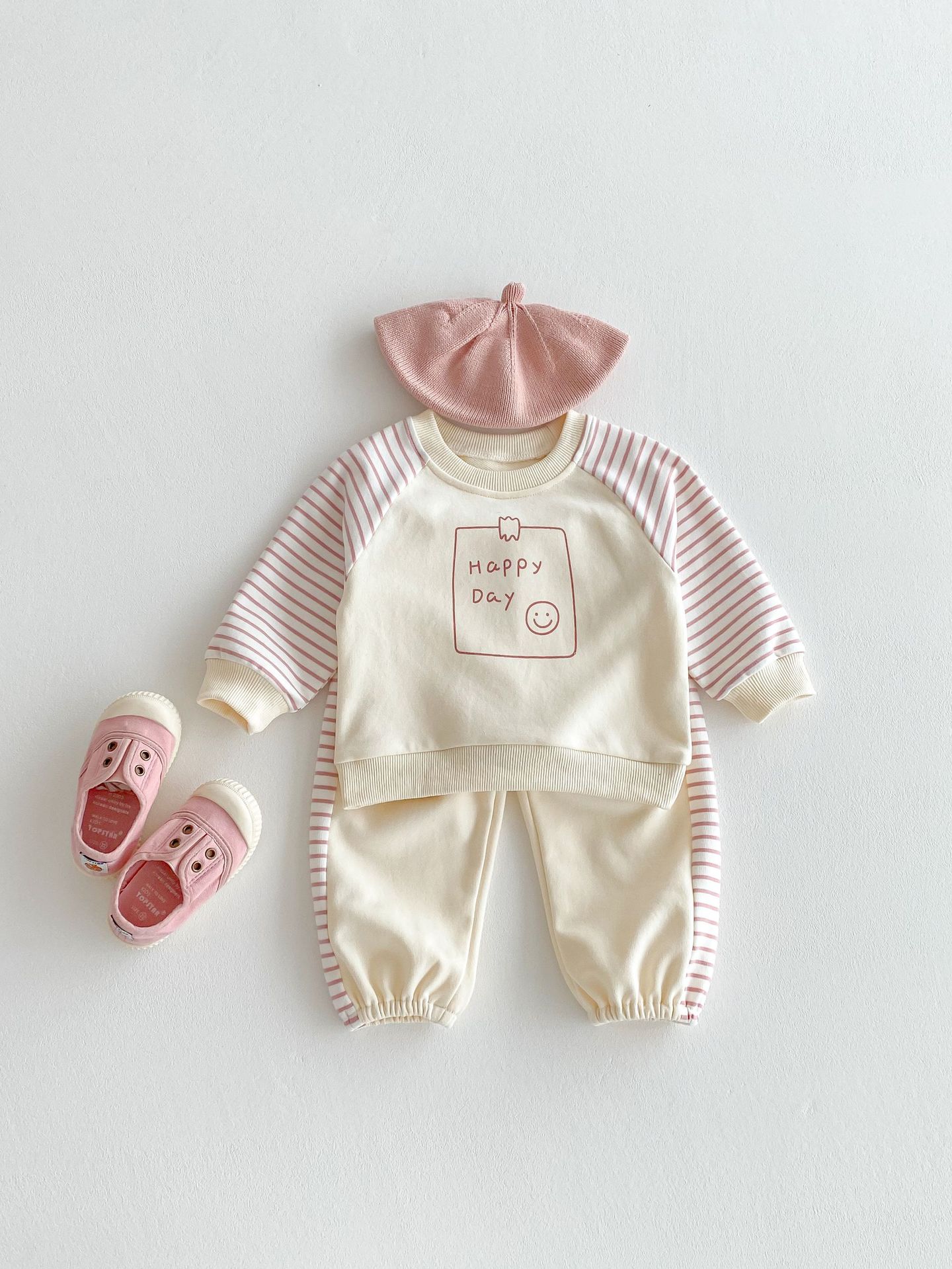 어린이 세트 가을 2024 새로운 어린이 아기 줄무늬 스웨터 바지 가을 유아 옷 투피스 세트스토어 가기
