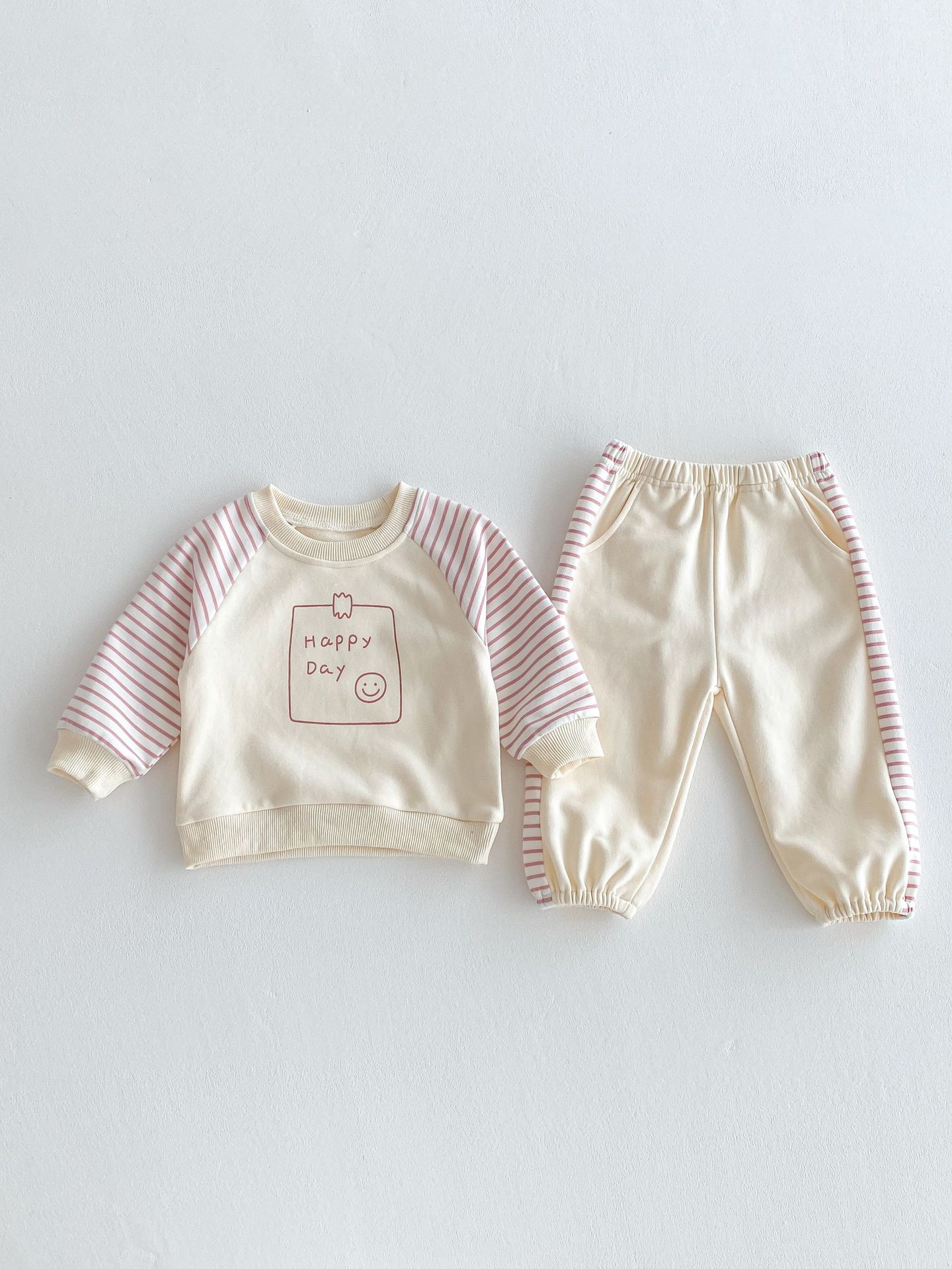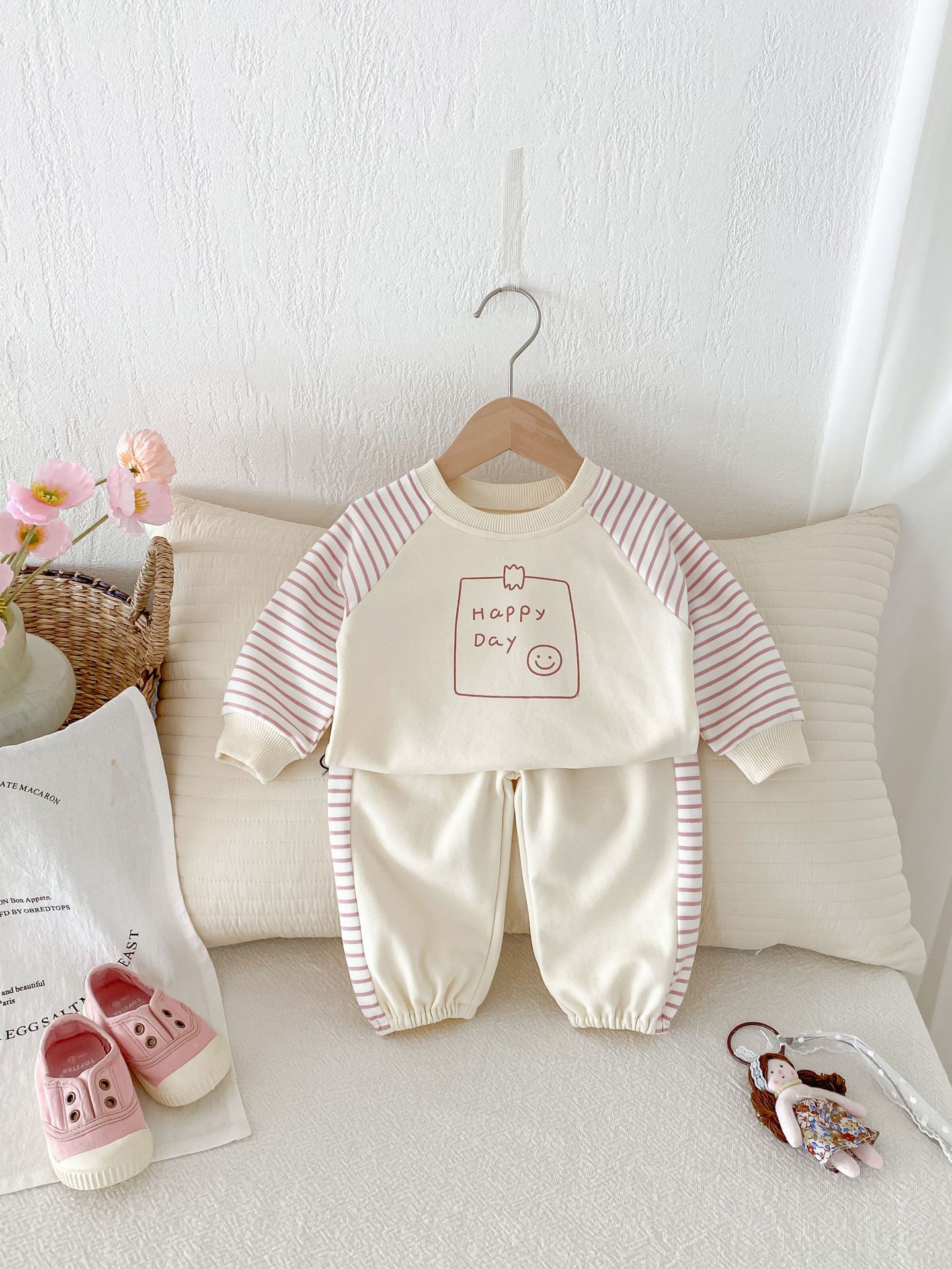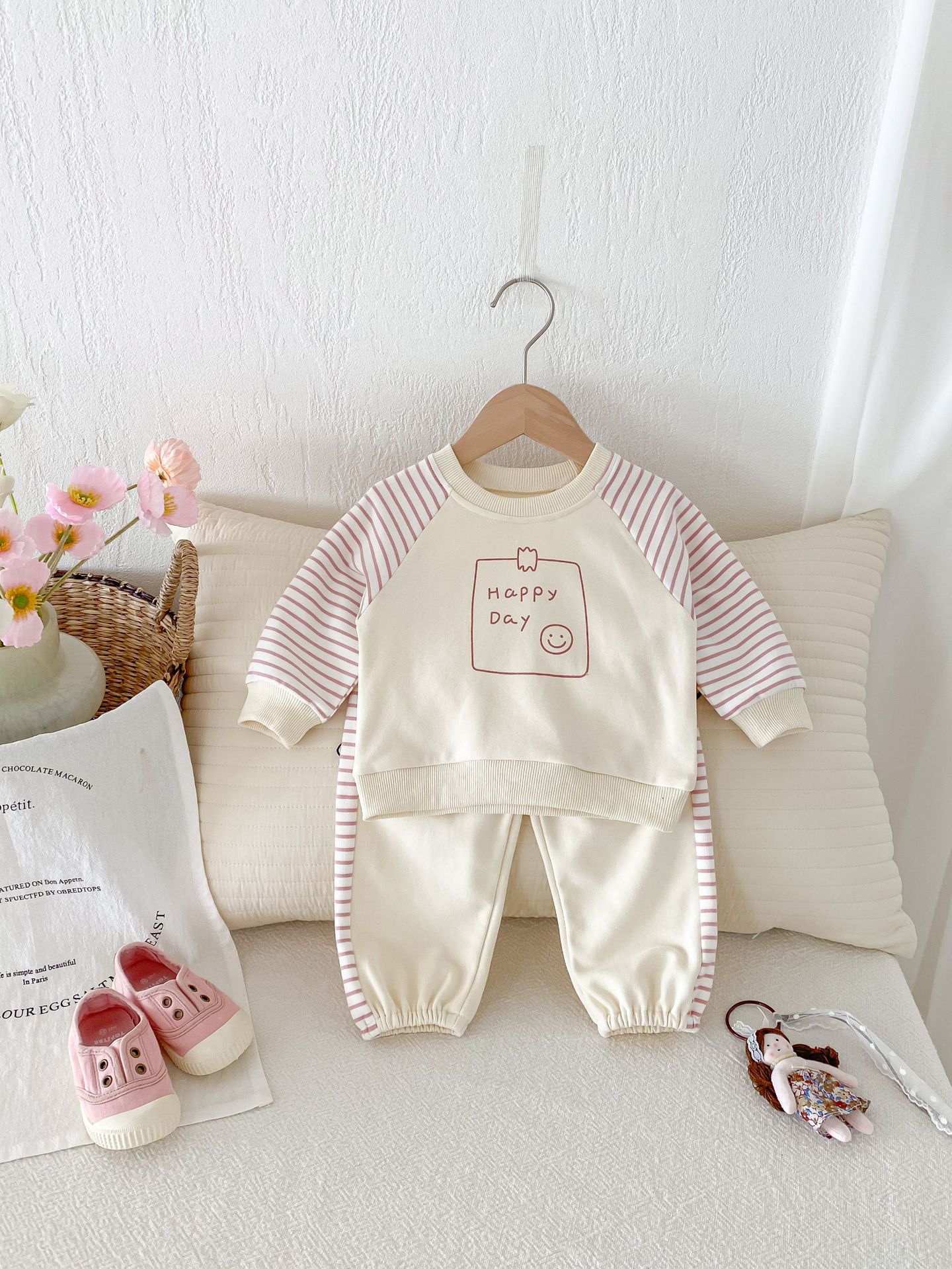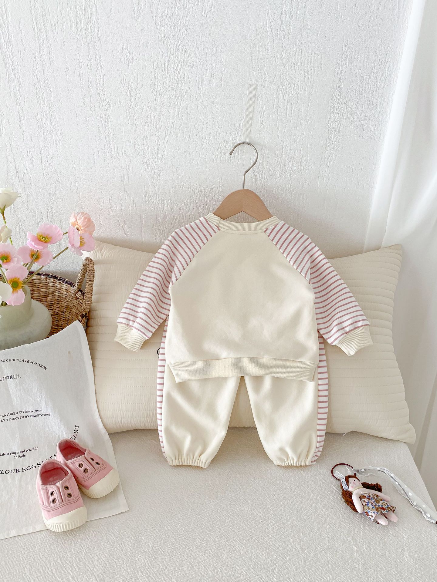 어린이 세트 가을 2024 새로운 어린이 아기 줄무늬 스웨터 바지 가을 유아 옷 투피스 세트