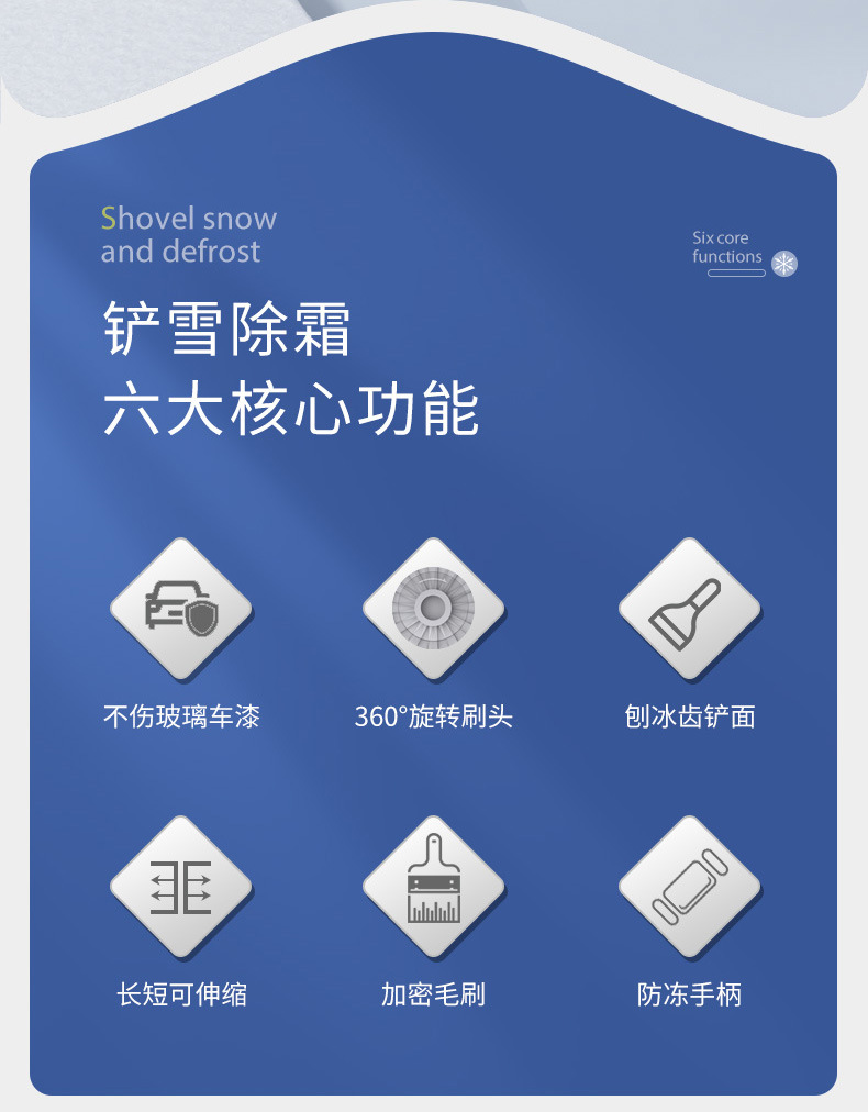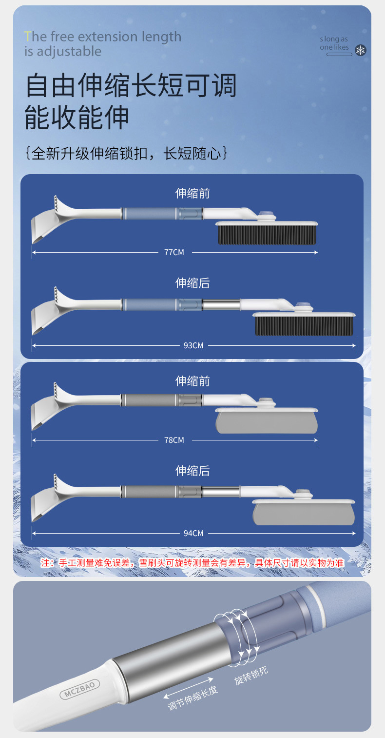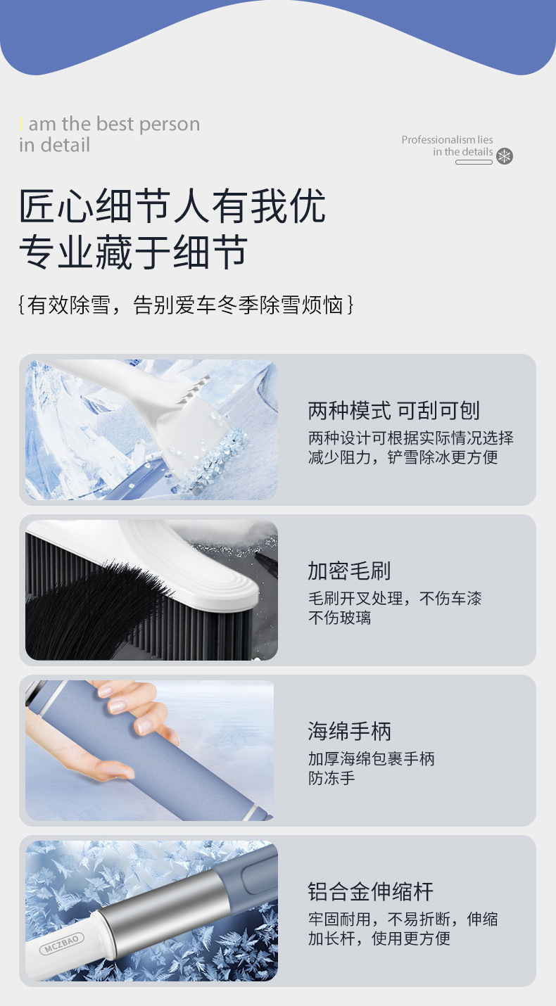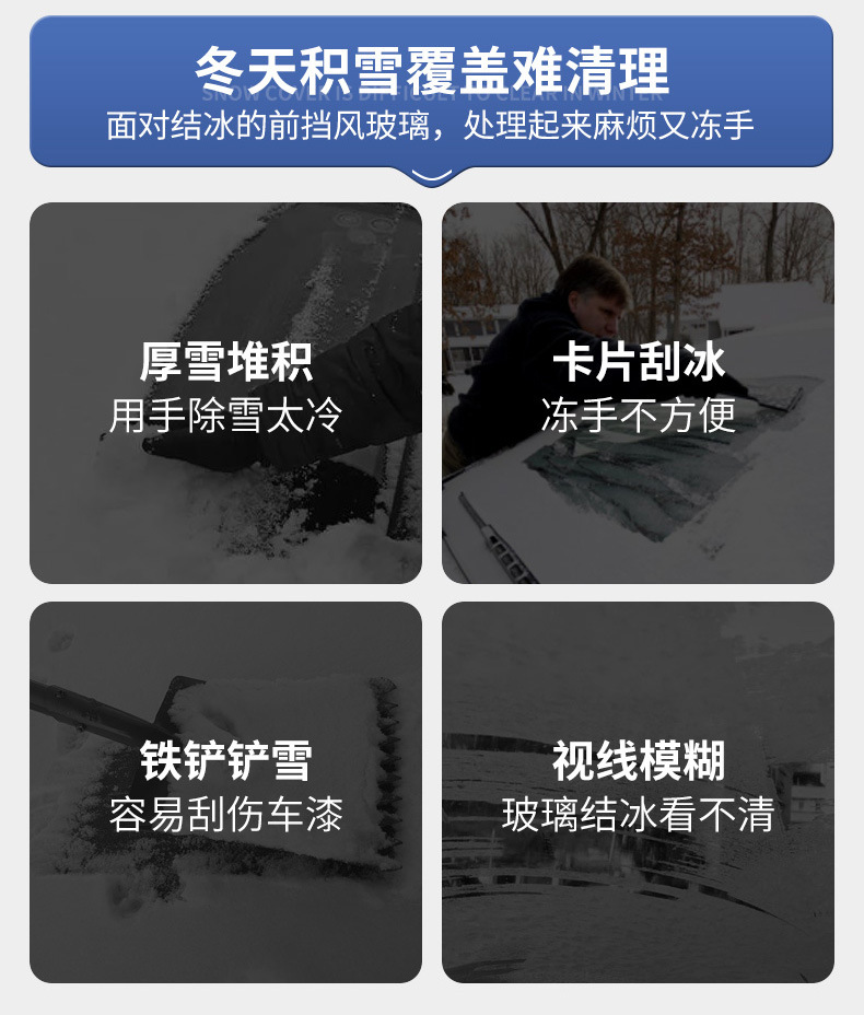 ●除了可以去除汽车上的雪和霜之外,还可以扫刷电动车,自行车以及被大雪被大雪覆盖的房子,玻璃门窗等。