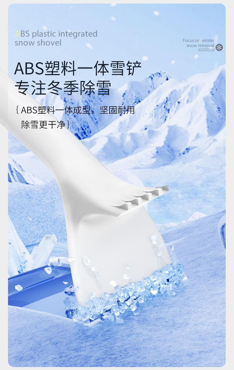 ●除雪铲头:采用ABS高强度塑料铸造成形,坚硬牢固
