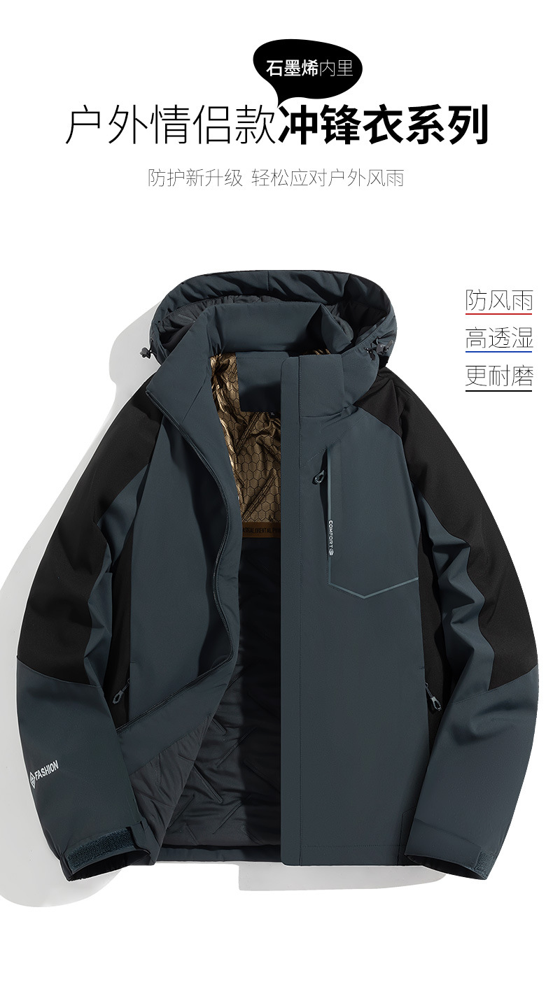 커플용 두꺼운 면 재킷 남성용 따뜻한 후드 2025 겨울 신상품 그래핀 면 재킷