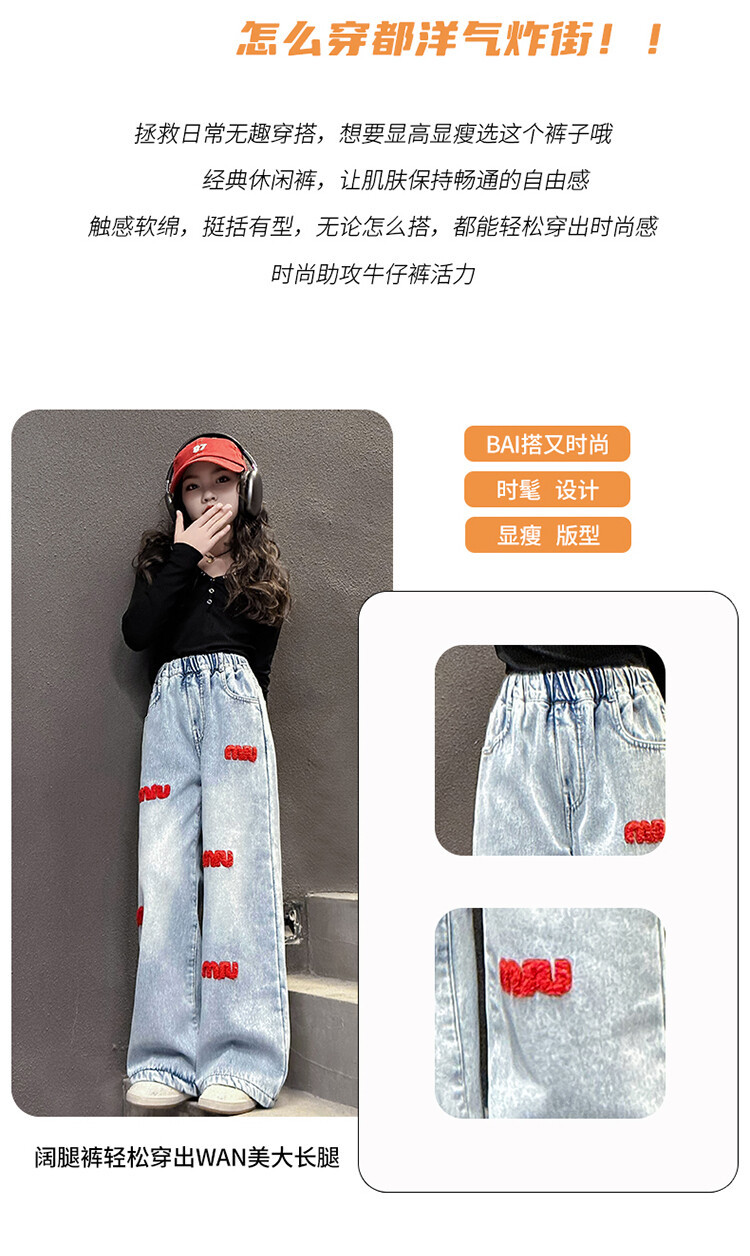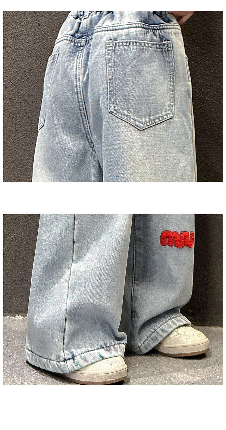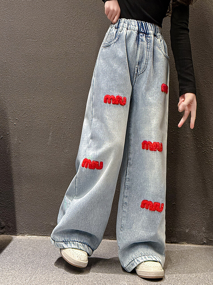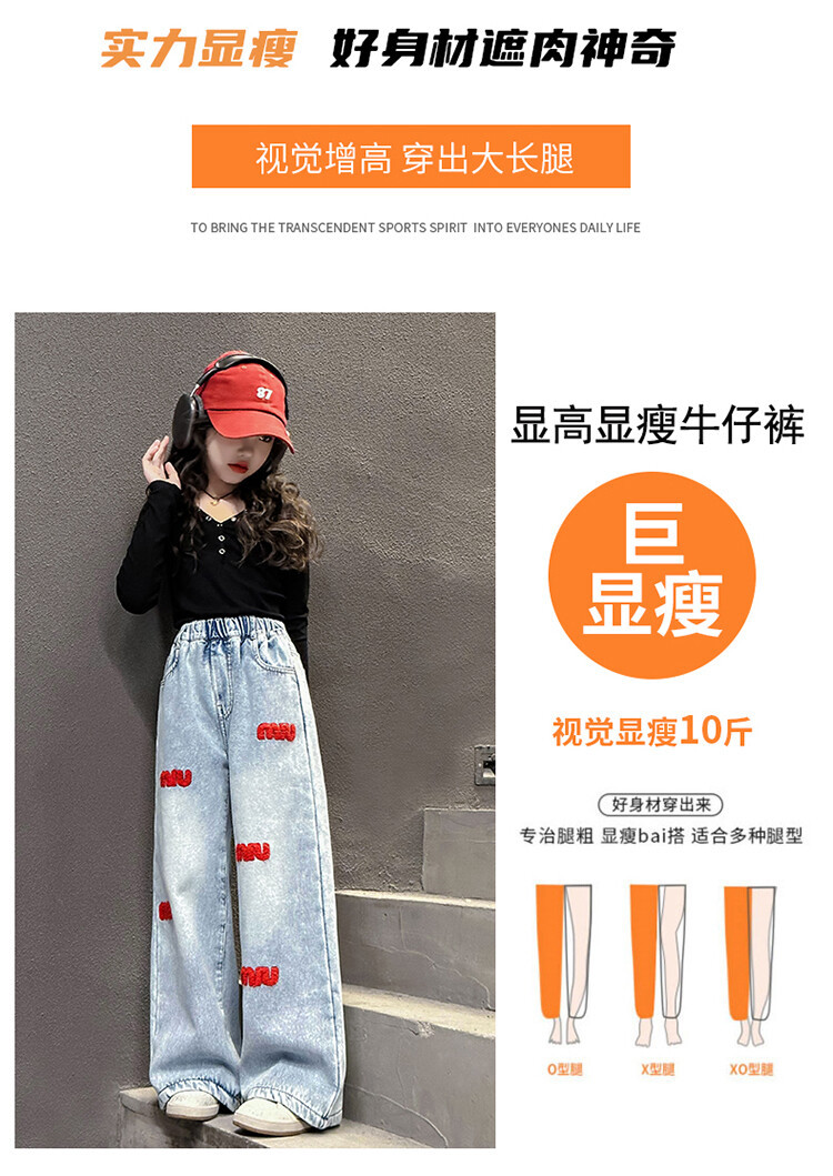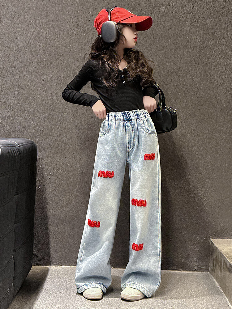 소녀의 봄 청바지 2024 새로운 서양식 소녀 봄과 가을 캐주얼 스트레이트 바지 어린이 봄 넓은 다리 바지스토어 가기