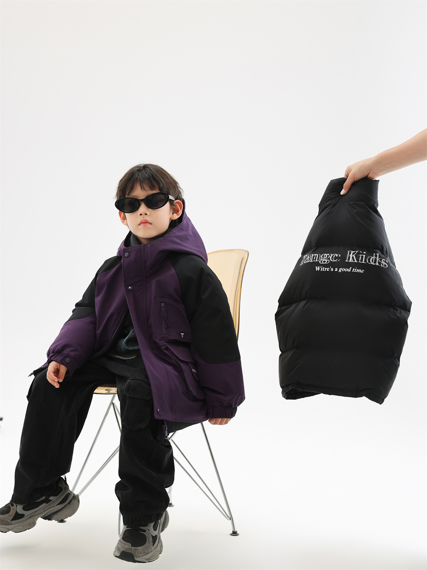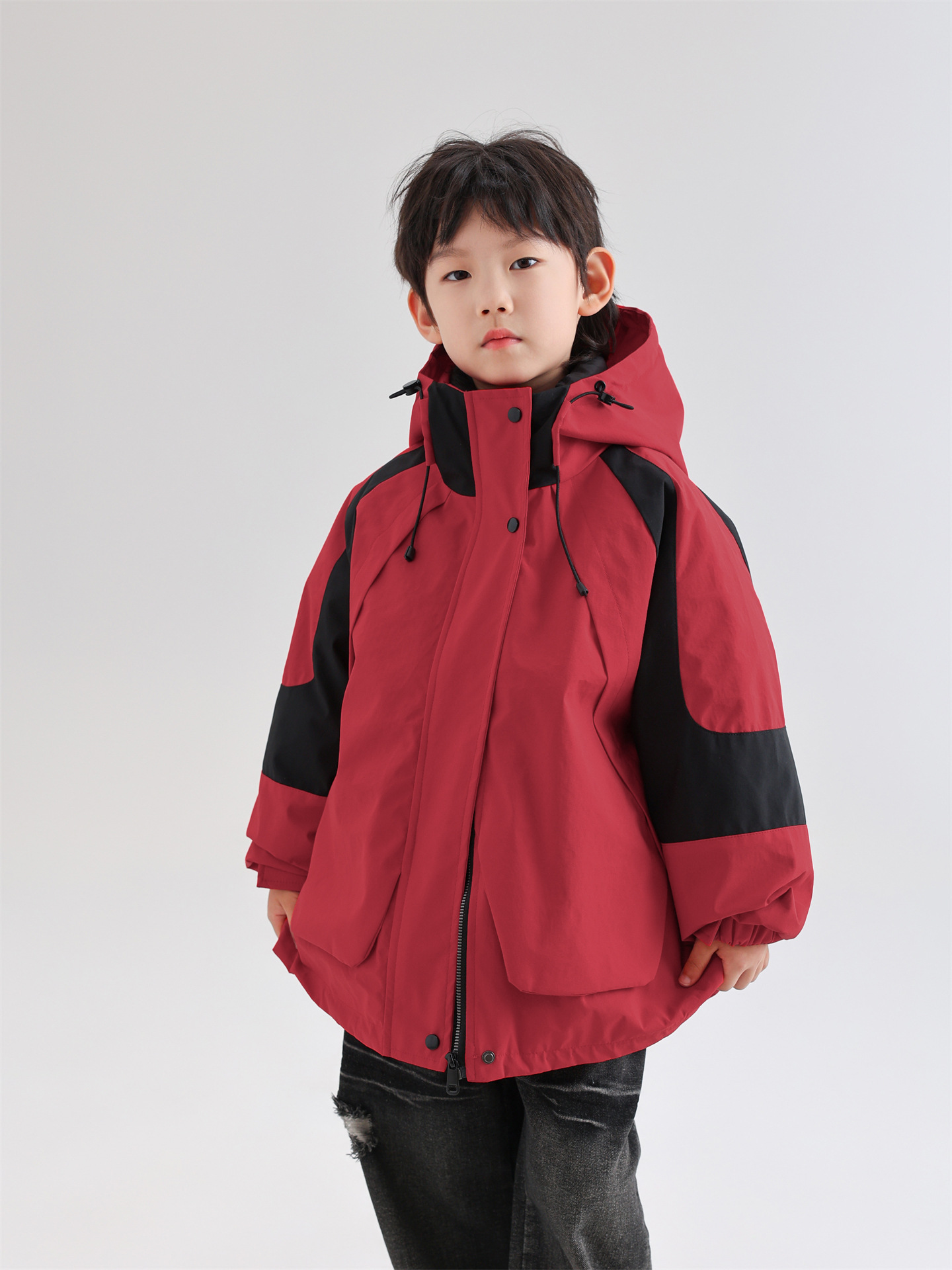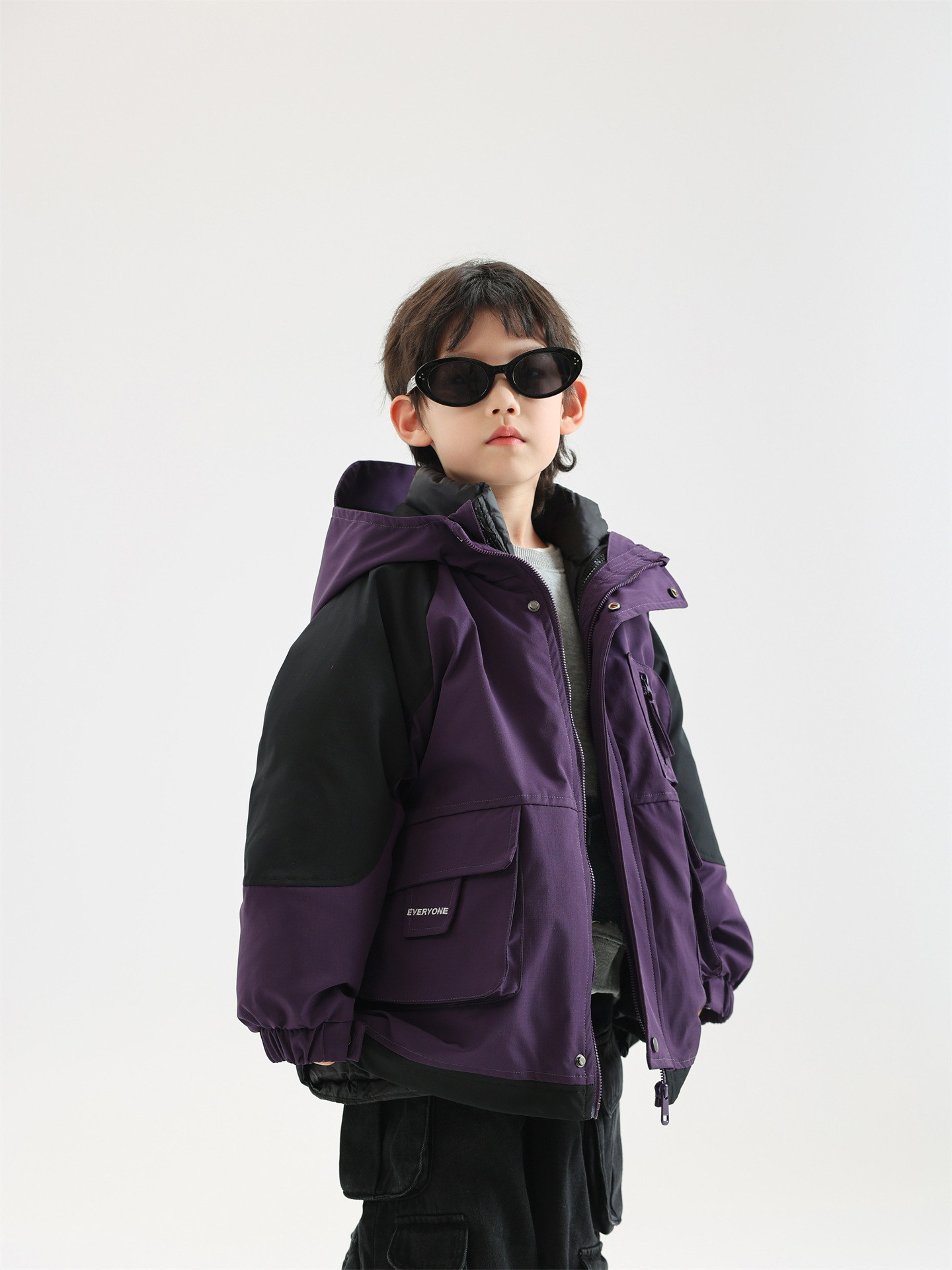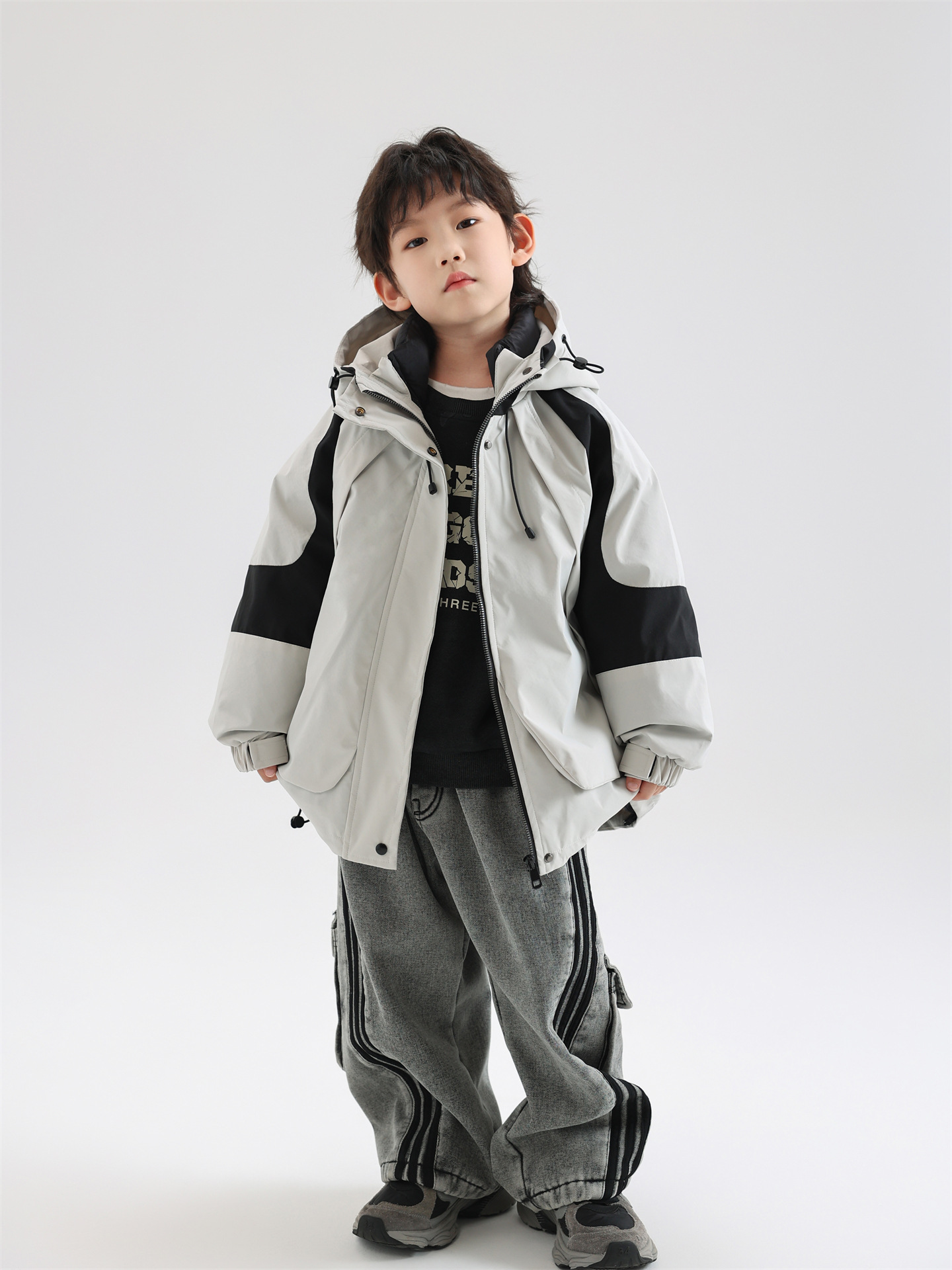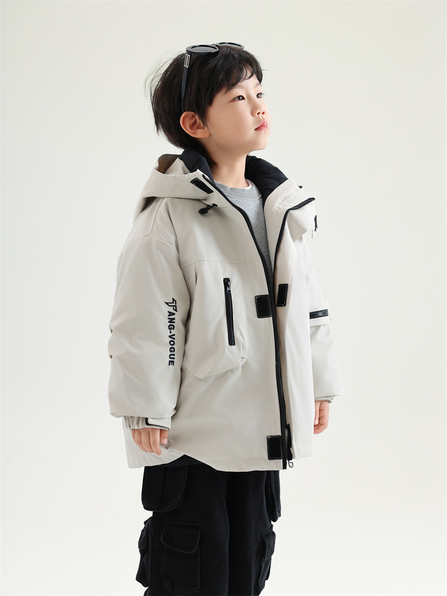면소재 화이트 덕다운 보온 스포츠 재킷 남아용 스키복 한국판 2025 신상품 3-in-1 다운 재킷