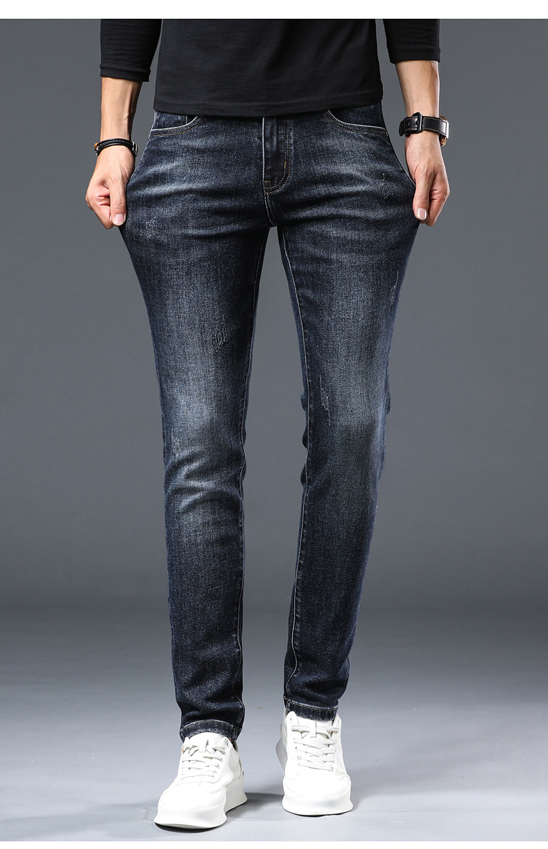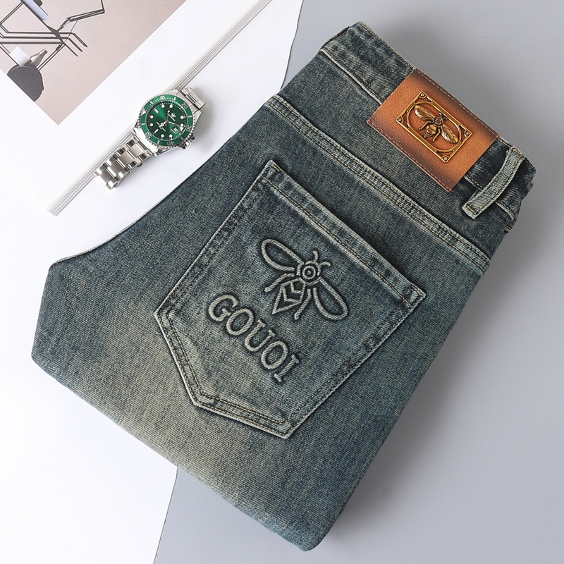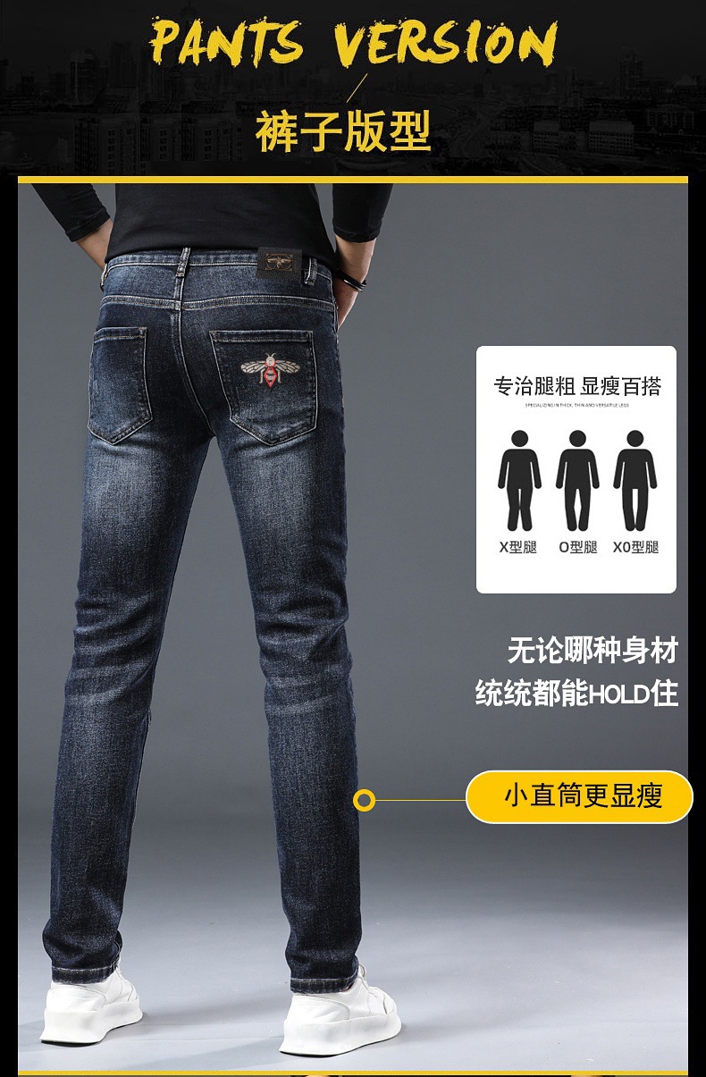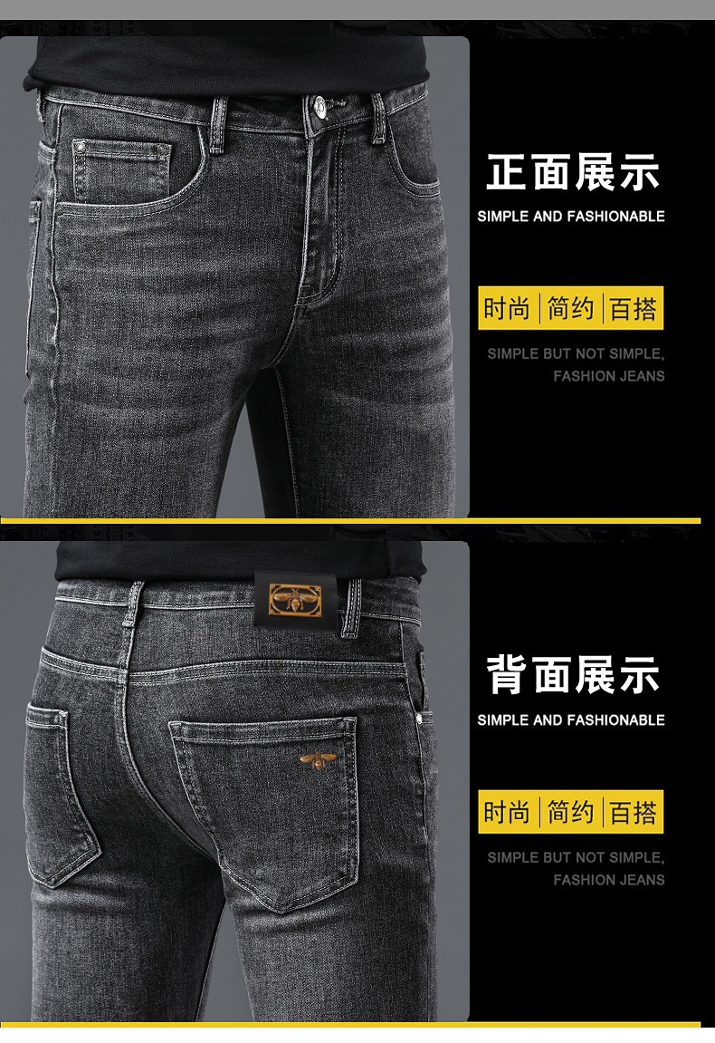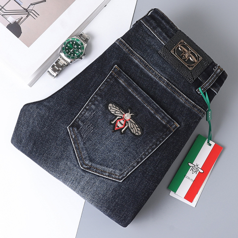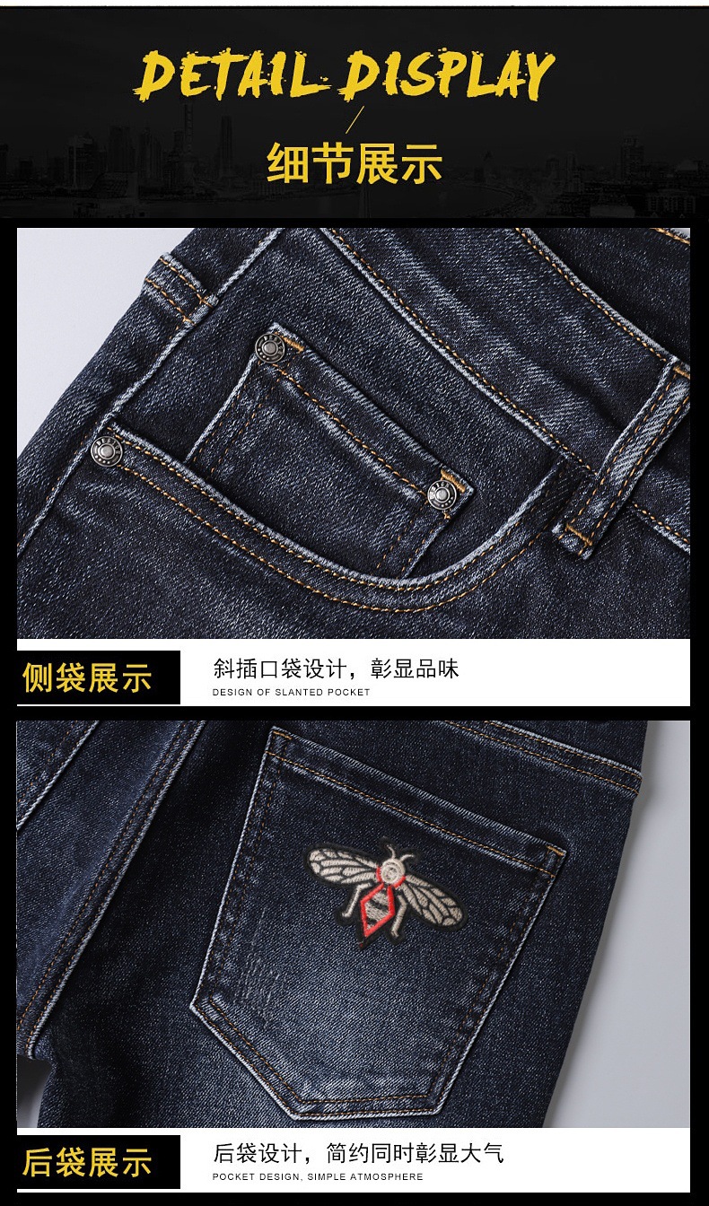 2024 새로운 고급 남성용 청바지 가을과 겨울 스트레치 슬림 핏 다크 블루 캐주얼 꿀벌 바지스토어 가기