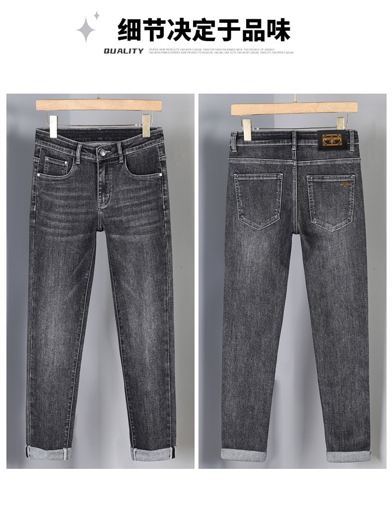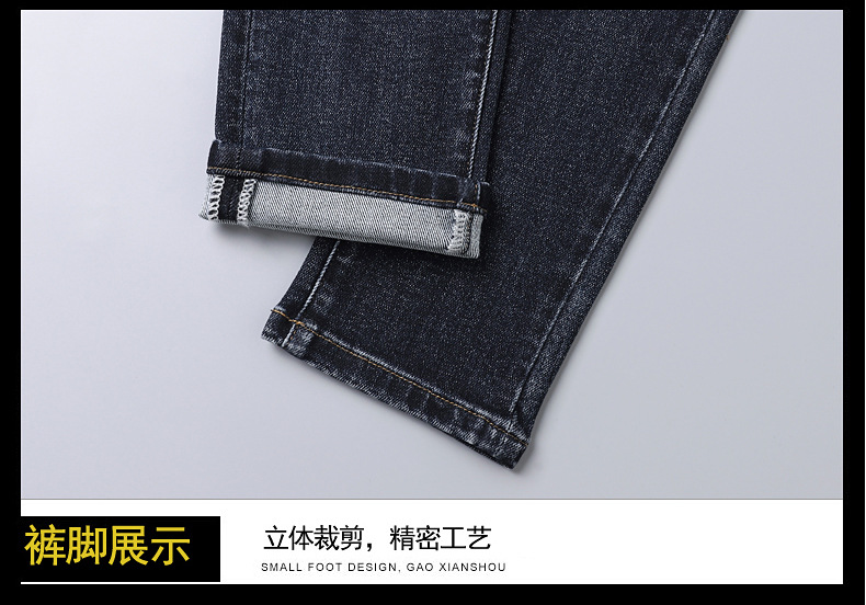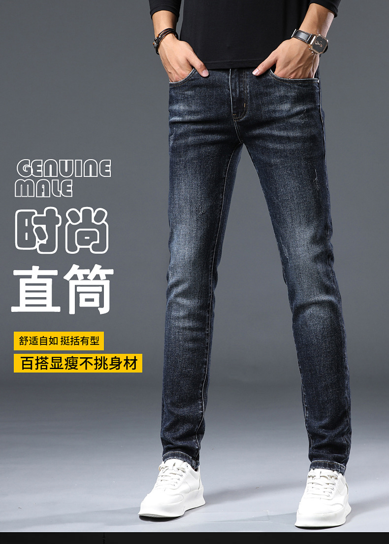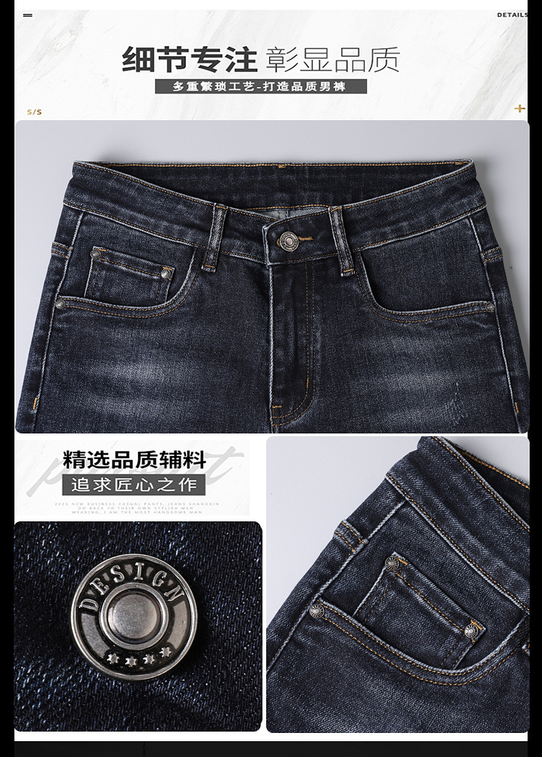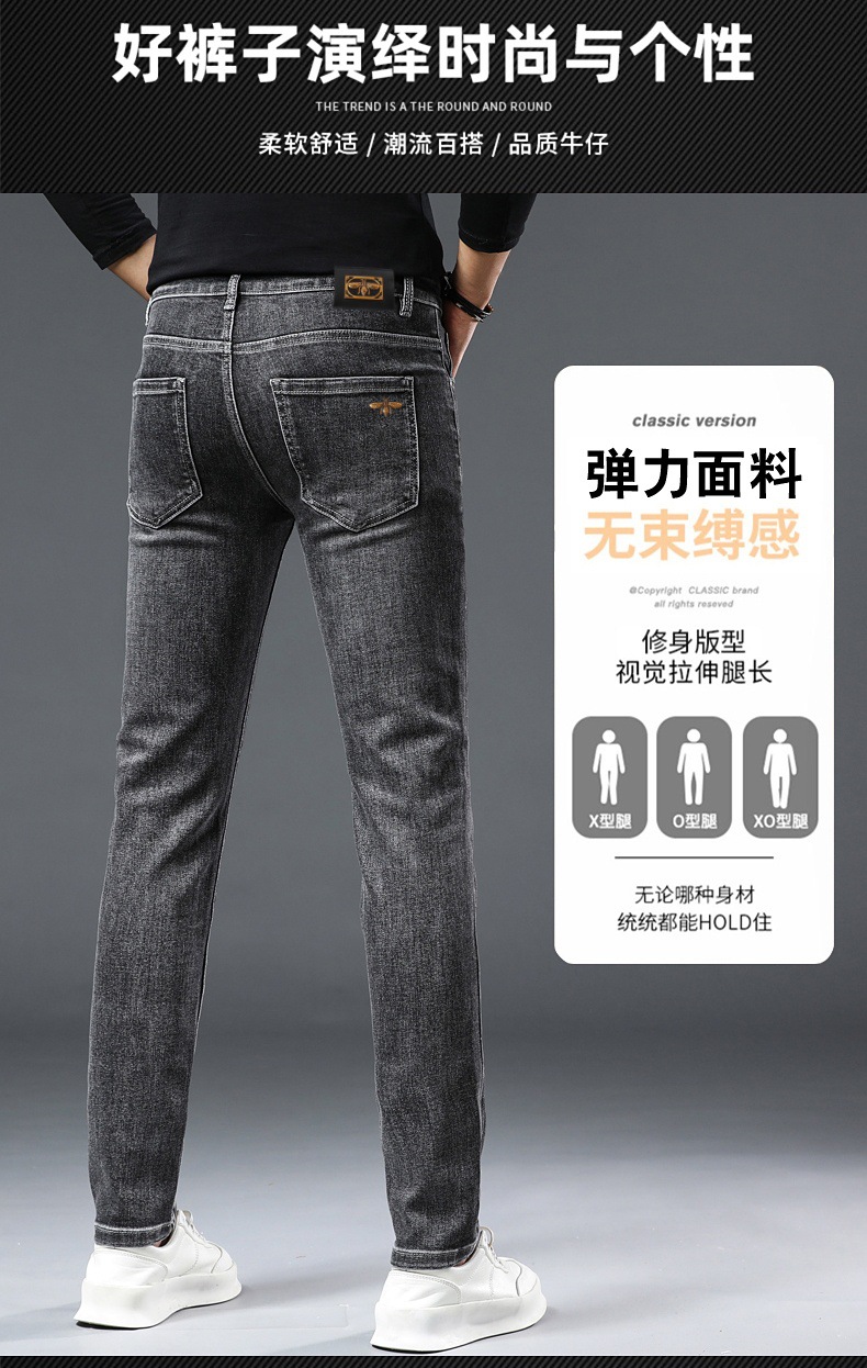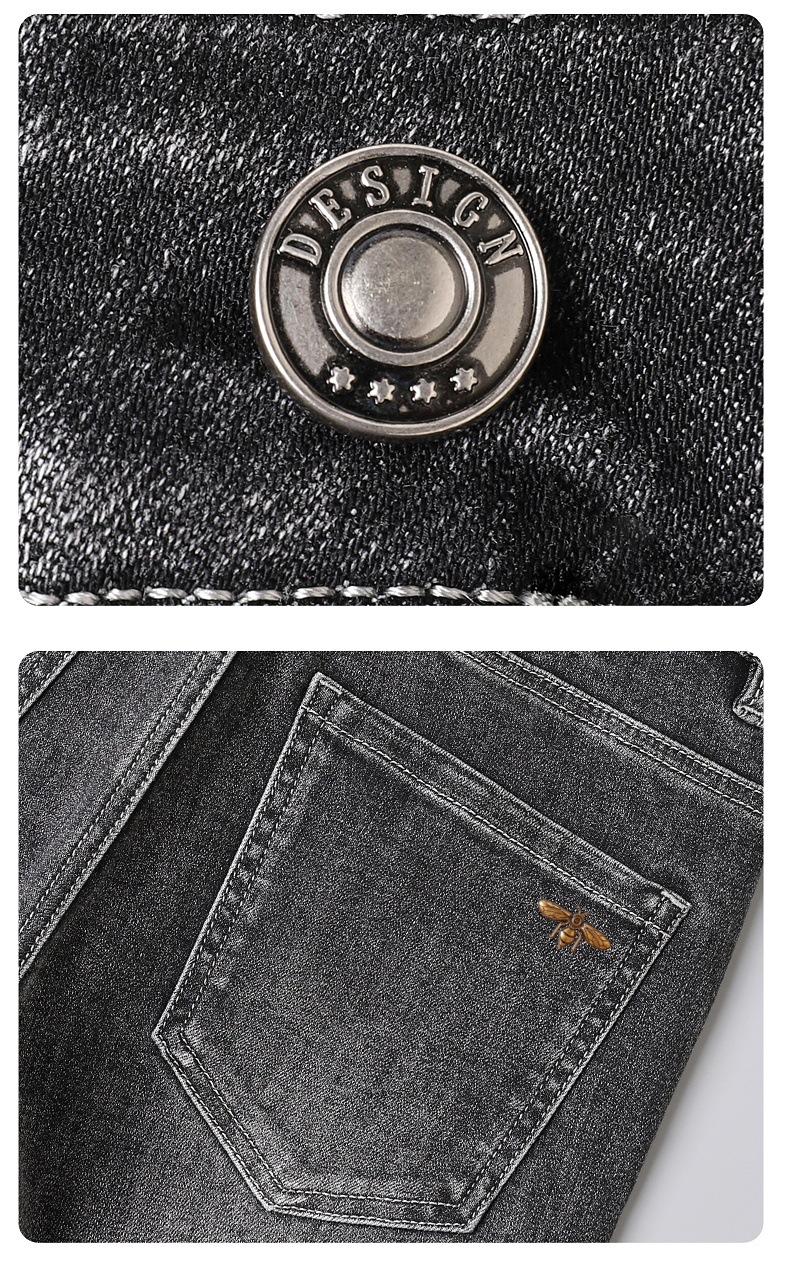 2024 새로운 고급 남성용 청바지 가을과 겨울 스트레치 슬림 핏 다크 블루 캐주얼 꿀벌 바지스토어 가기