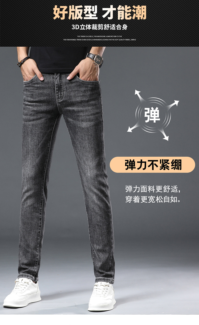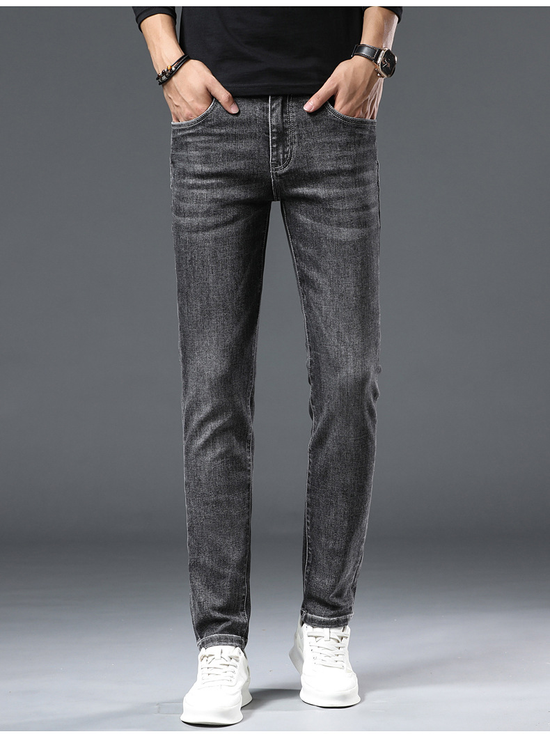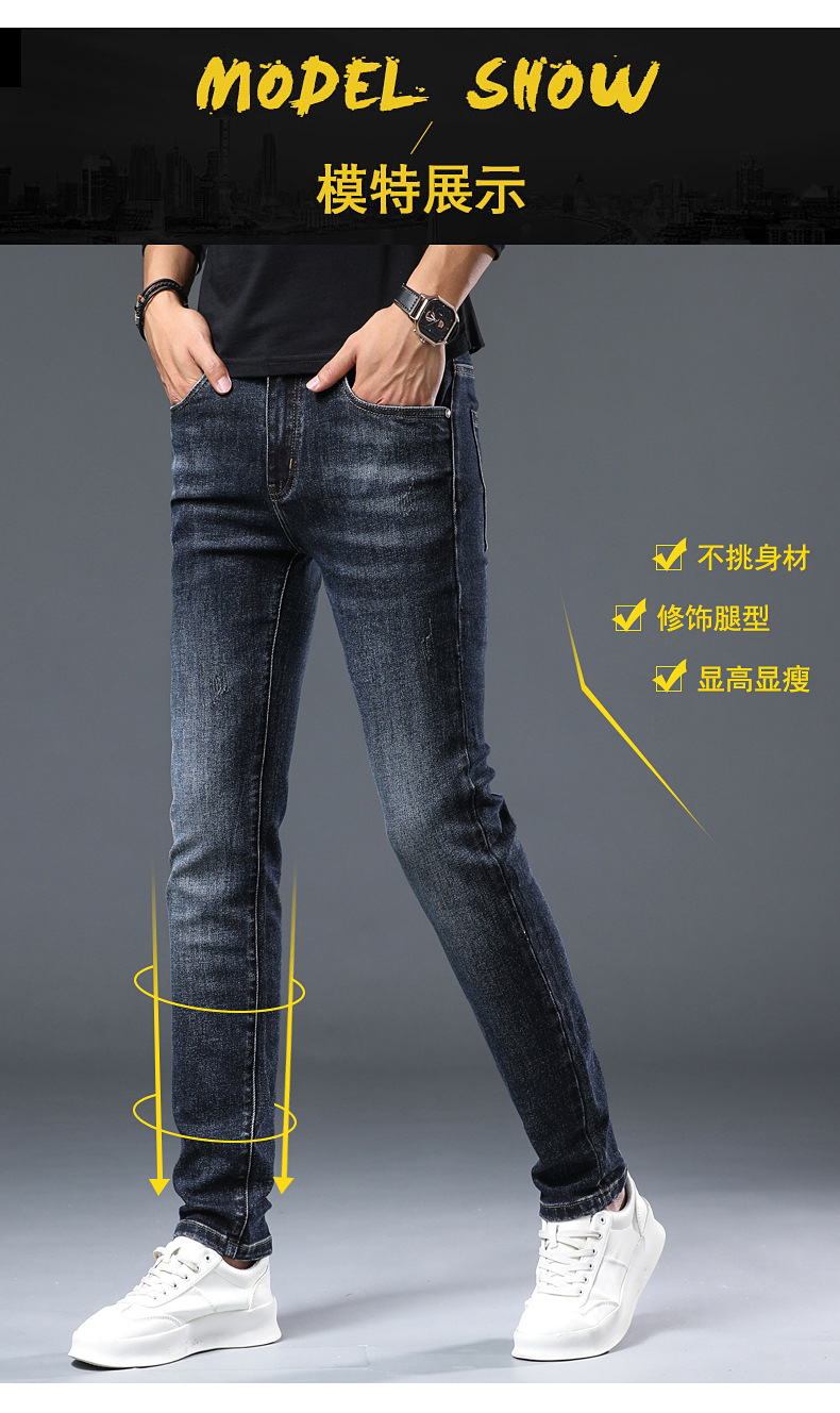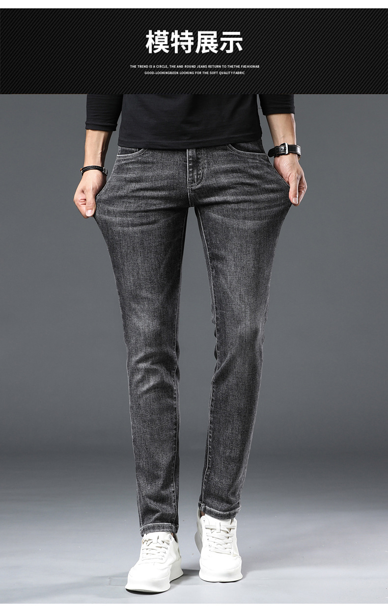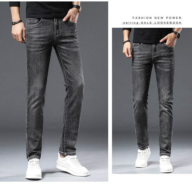 2024 새로운 고급 남성용 청바지 가을과 겨울 스트레치 슬림 핏 다크 블루 캐주얼 꿀벌 바지스토어 가기
