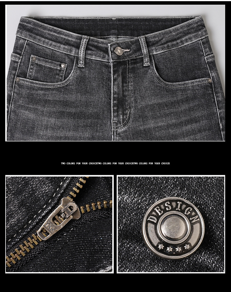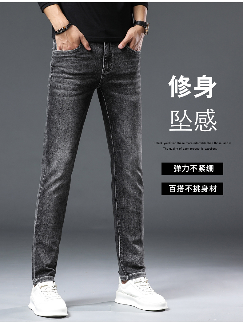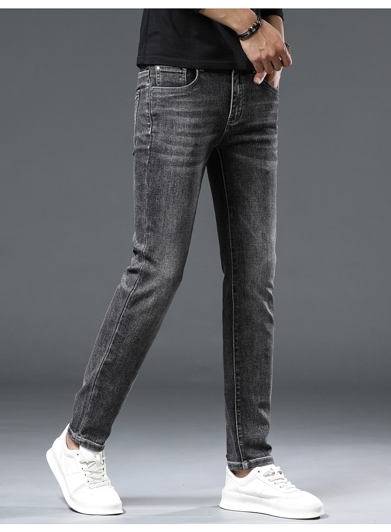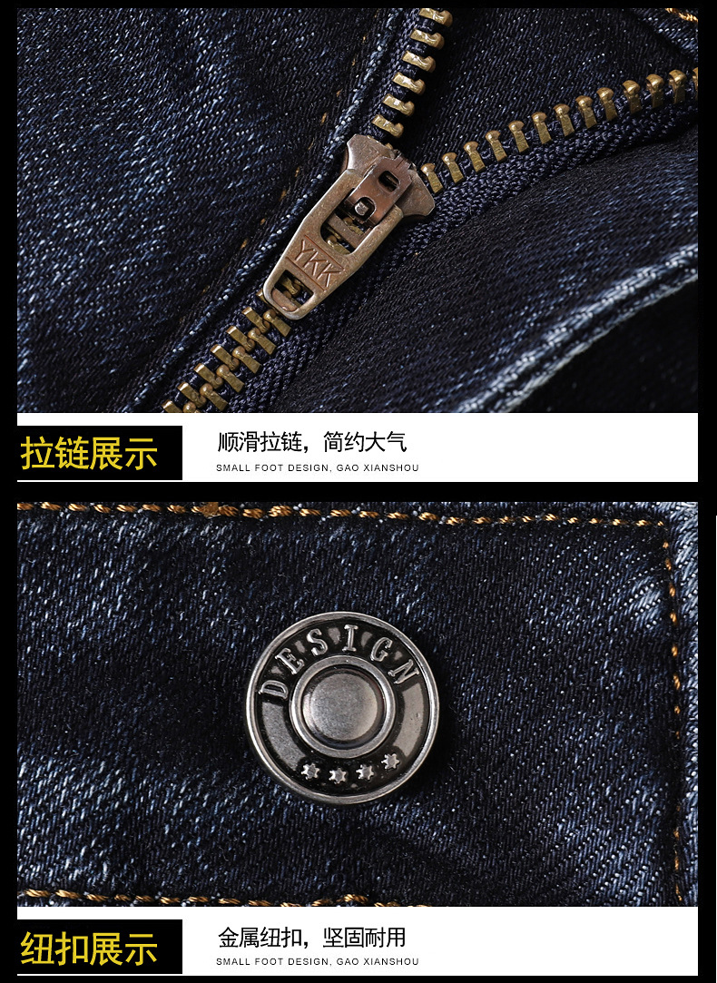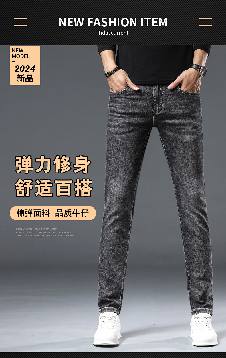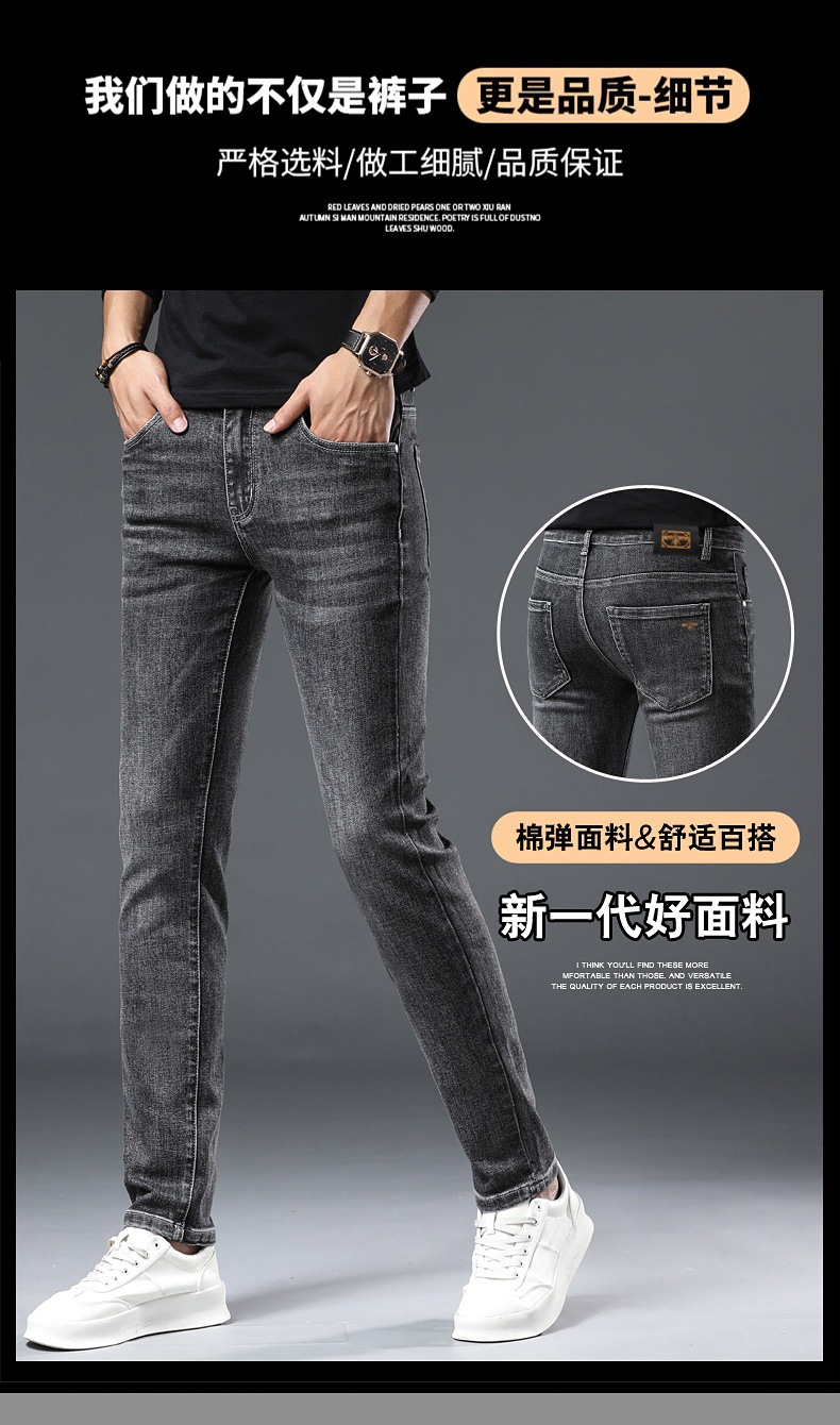 2024 새로운 고급 남성용 청바지 가을과 겨울 스트레치 슬림 핏 다크 블루 캐주얼 꿀벌 바지
