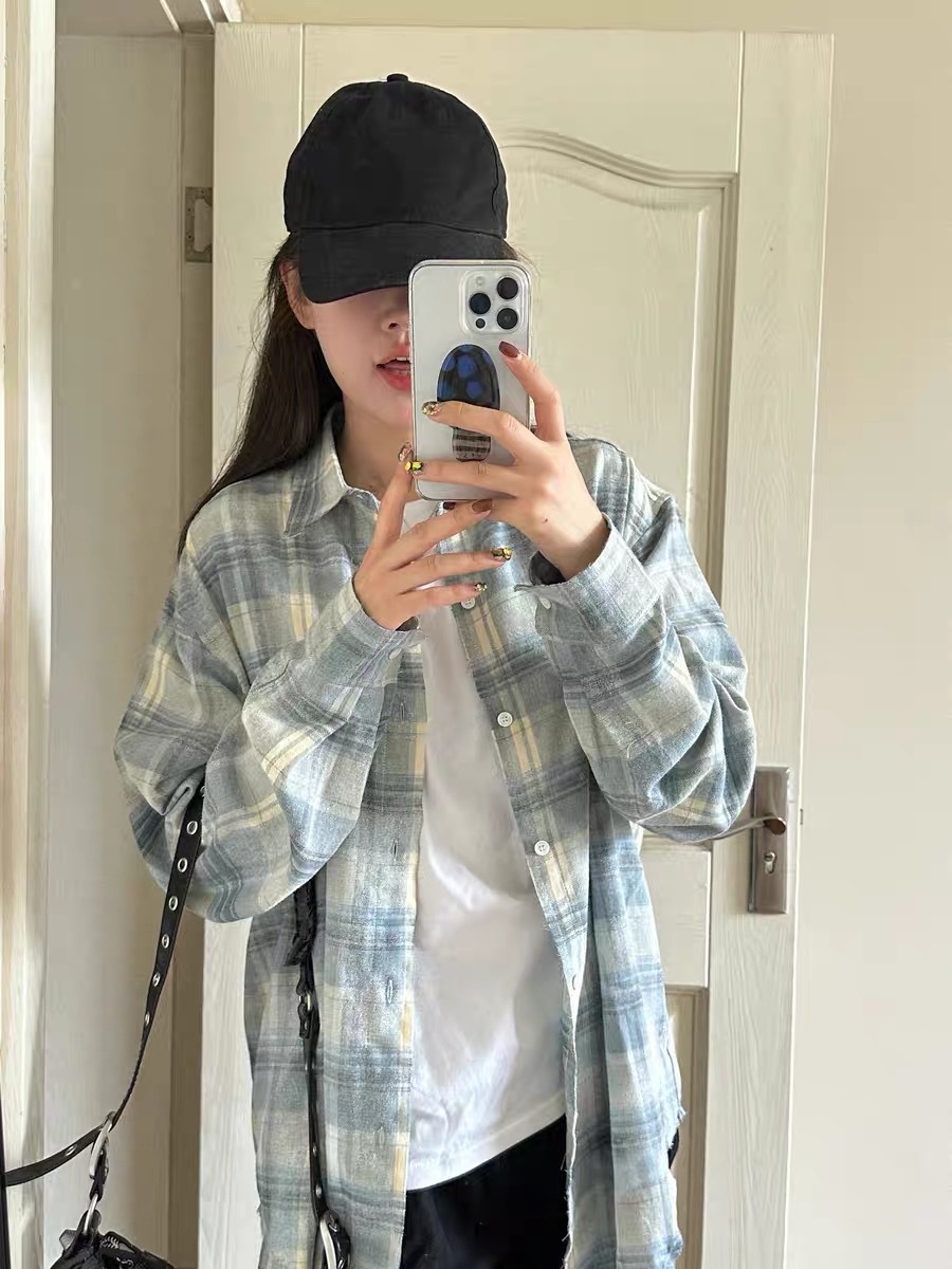 홍콩 스타일 레트로 게으른 격자 무늬 셔츠 여성의 봄과 가을 새로운 슬림핏 루즈 디자인 올 매치 셔츠 아우터 탑스토어 가기