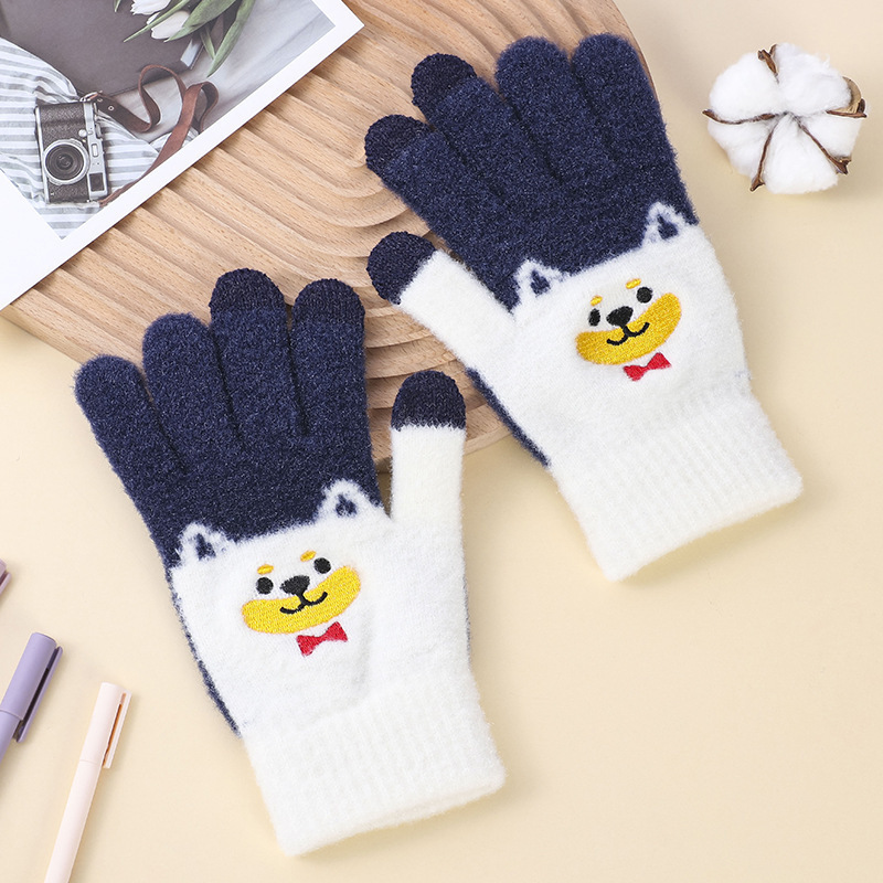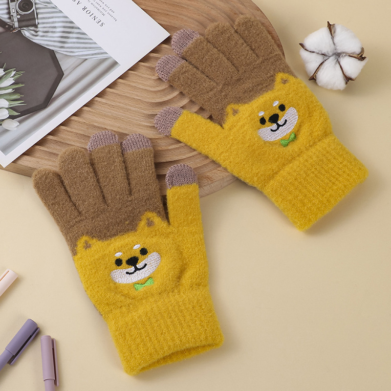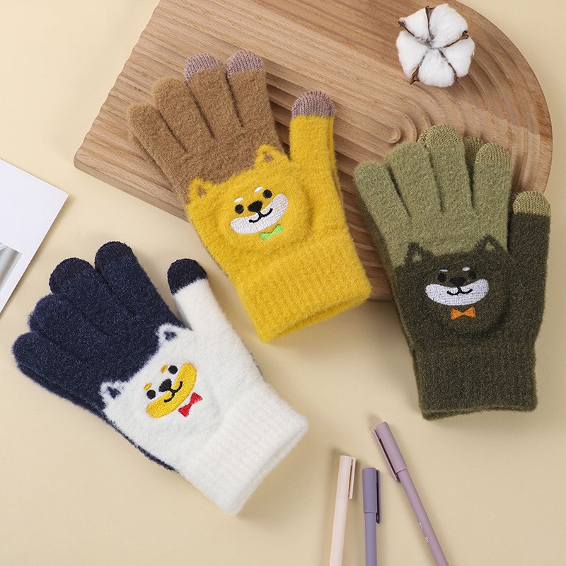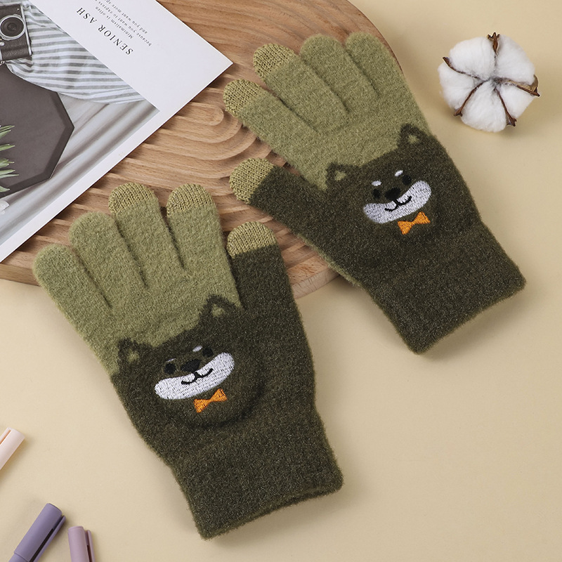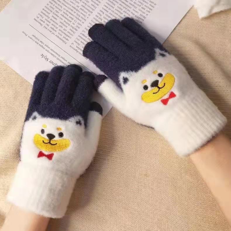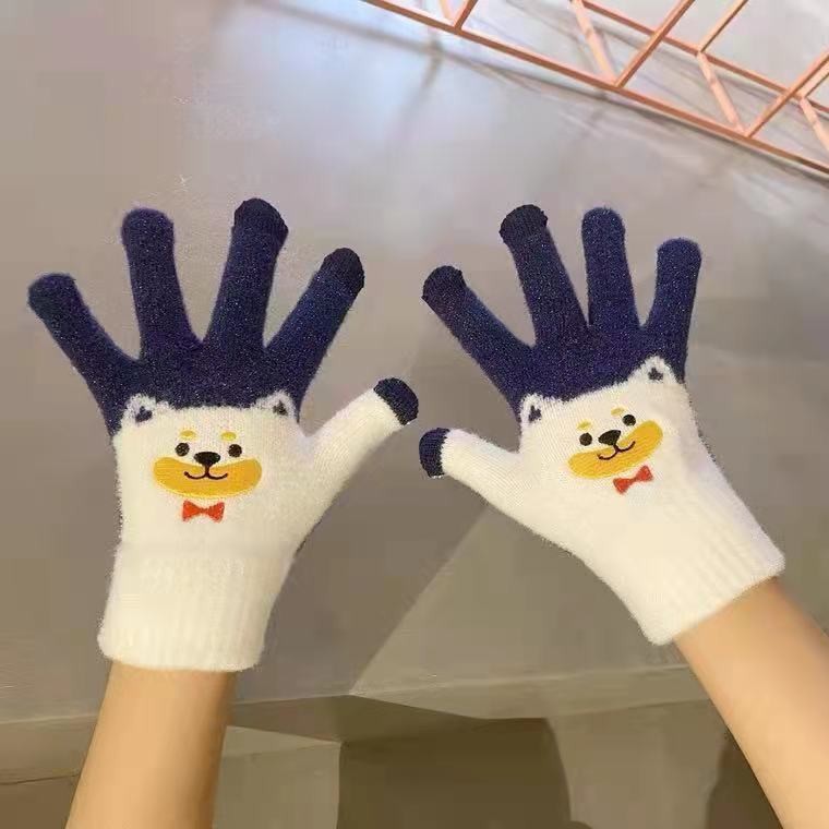 터치 스크린 따뜻한 장갑 여자의 겨울 기모 두꺼운 만화 곰 다섯 손가락 학생 사이클링 방한 울 장갑