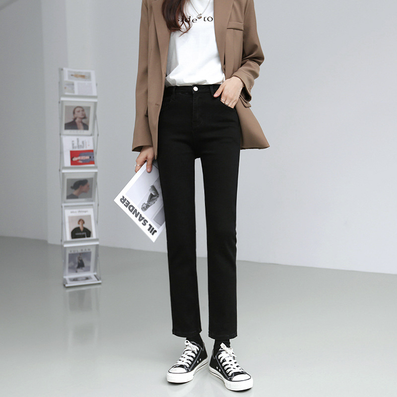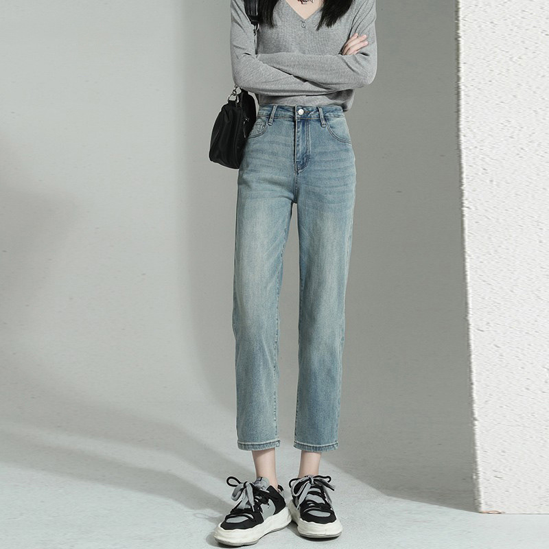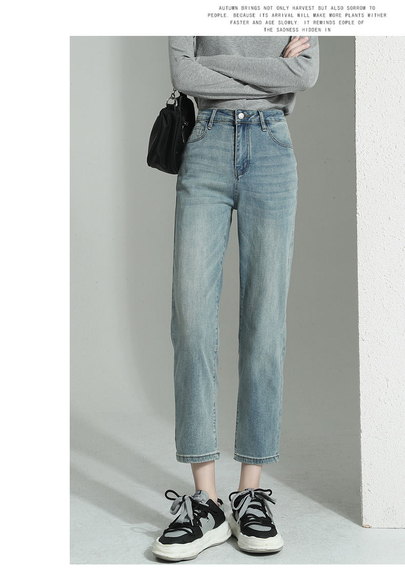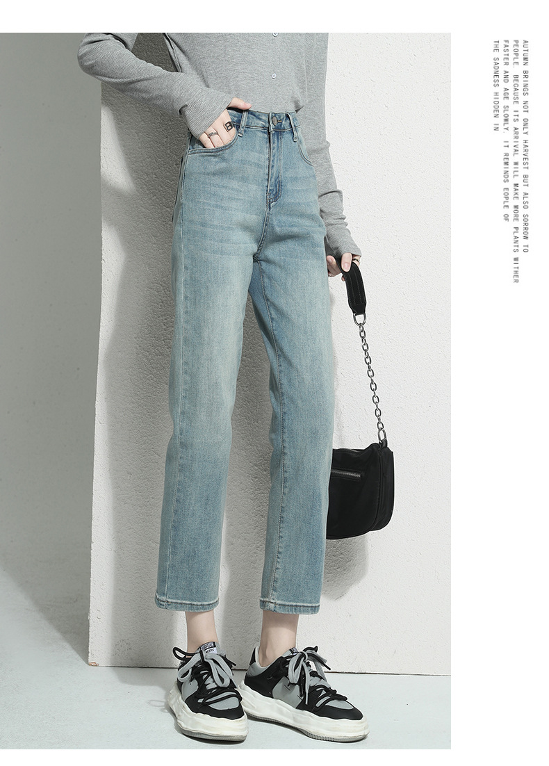 봄과 가을 9 점 스트레이트 청바지 여성용 가을 얇은 2024 새로운 높은 허리 작은 프렌치 스틱 파이프 바지스토어 가기