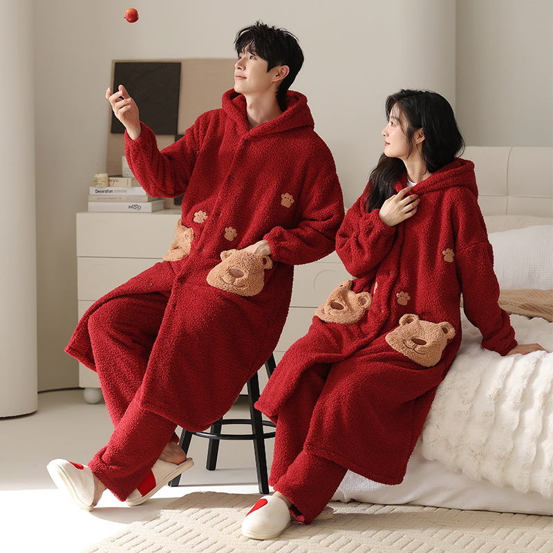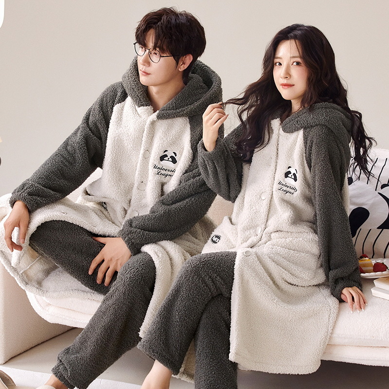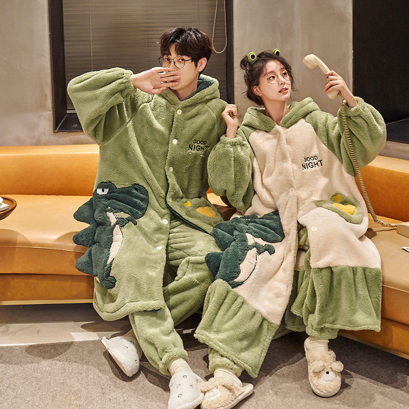 엄밀히 선정 된 겨울 산호 양털 커플 잠옷 캐주얼 귀여운 남자와 여자의 집 옷 따뜻한 플란넬 잠옷 세트스토어 가기