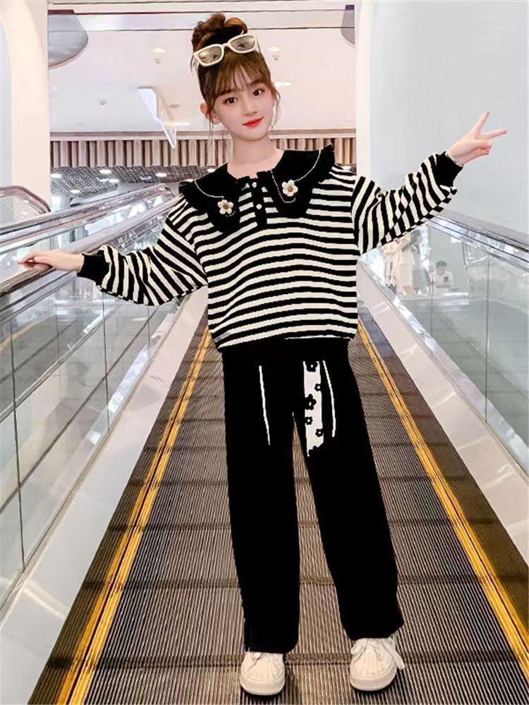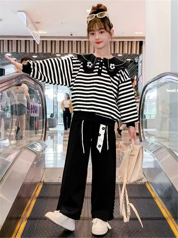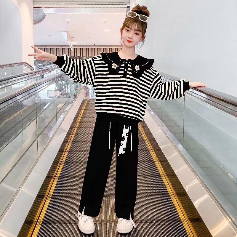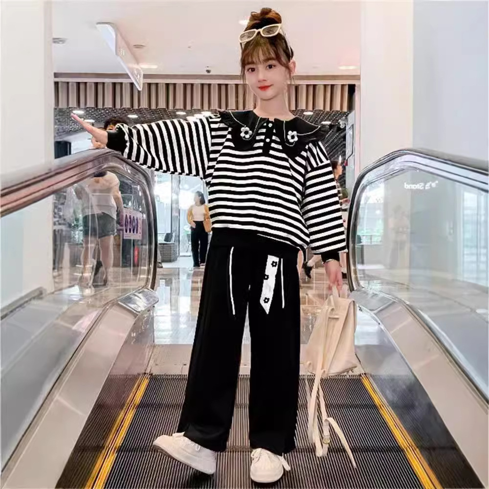 소녀 가을 원피스 세트 2024 새로운 서양식 어린이와 소녀의 봄과 가을 원피스 큰 어린이 스포츠를위한 투피스 세트