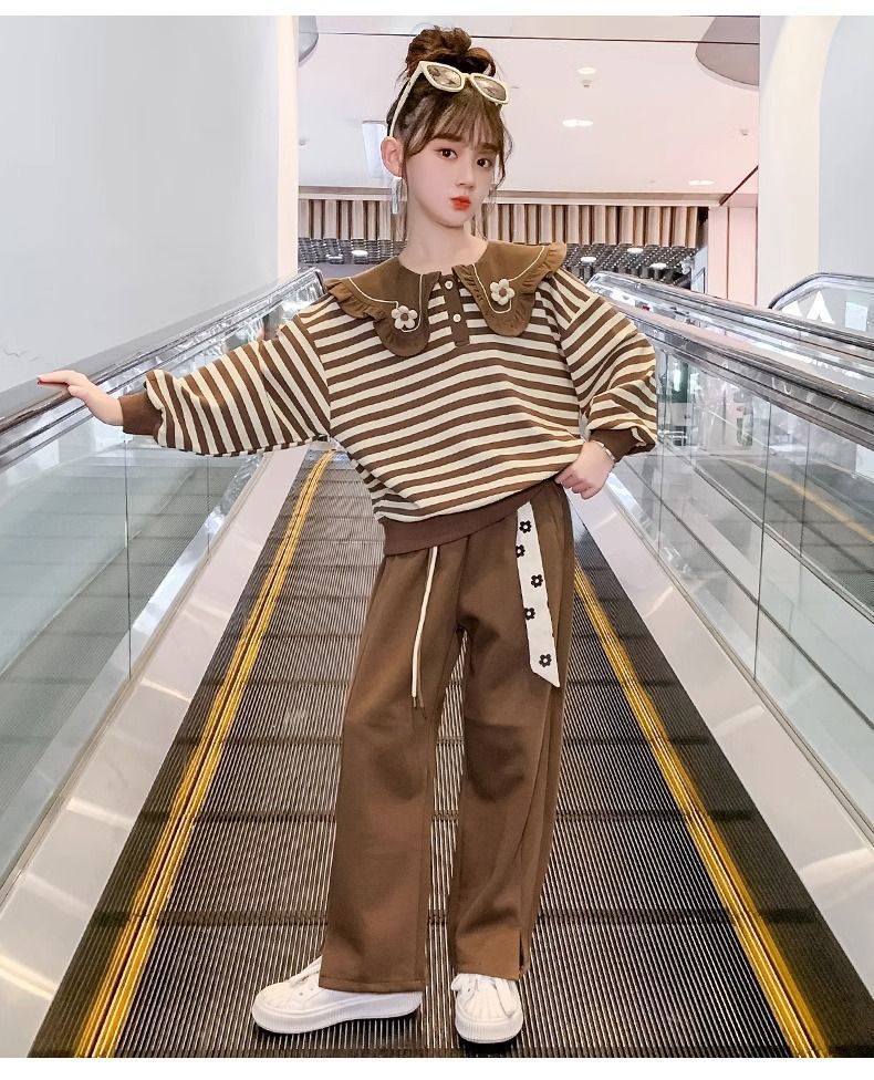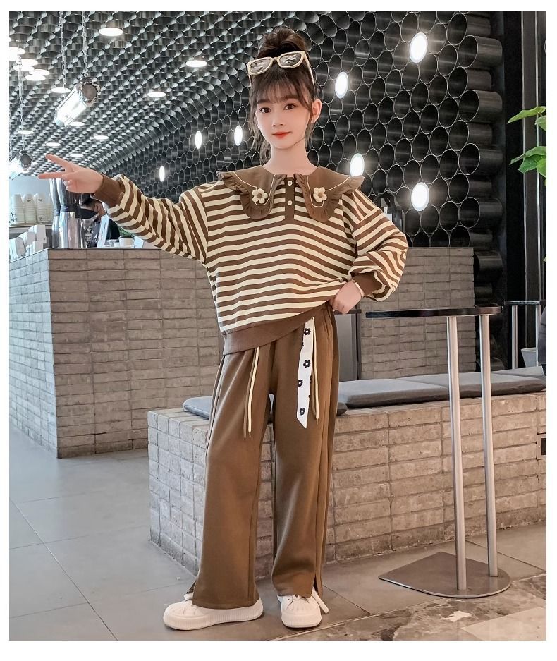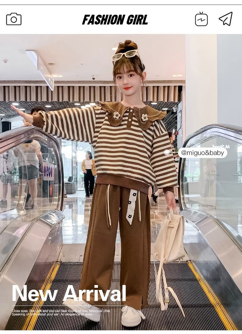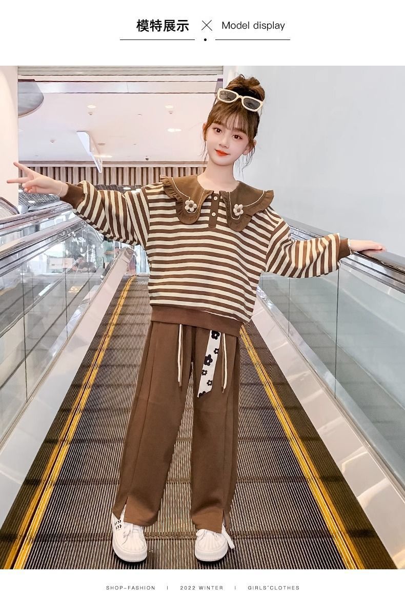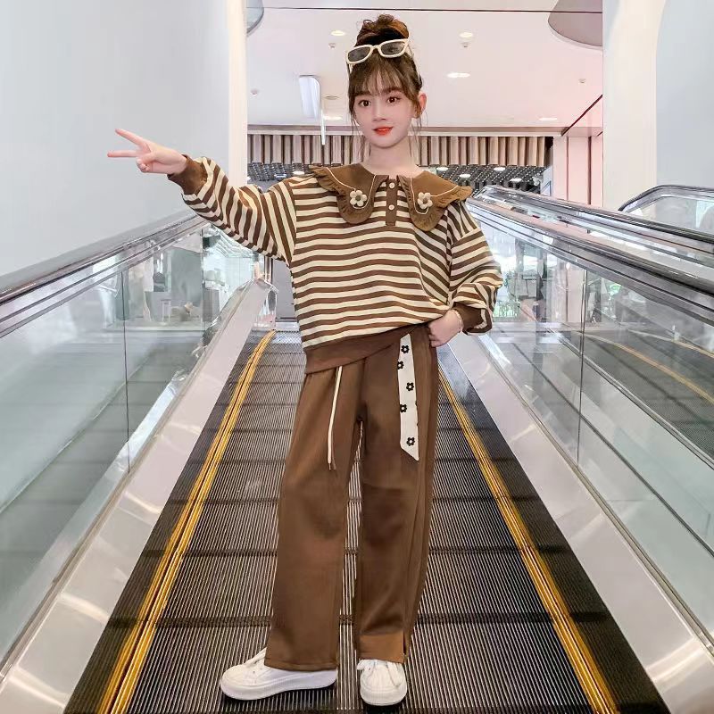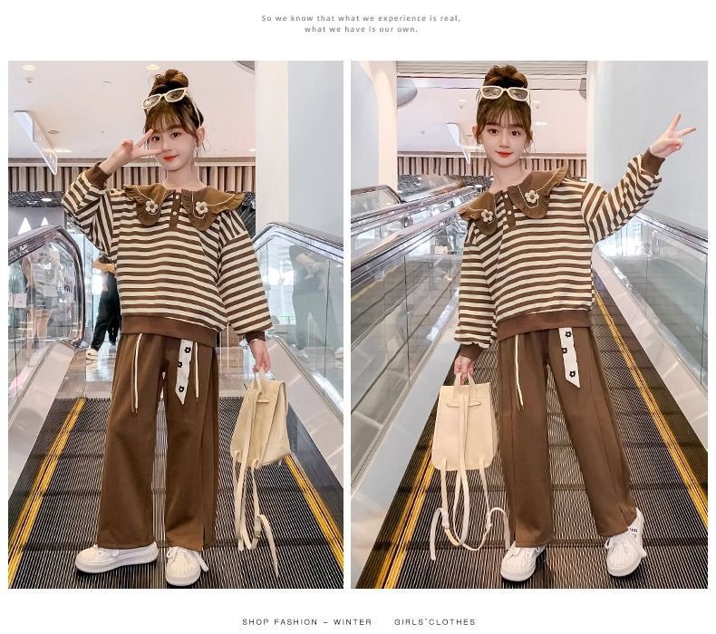 소녀 가을 원피스 세트 2024 새로운 서양식 어린이와 소녀의 봄과 가을 원피스 큰 어린이 스포츠를위한 투피스 세트스토어 가기