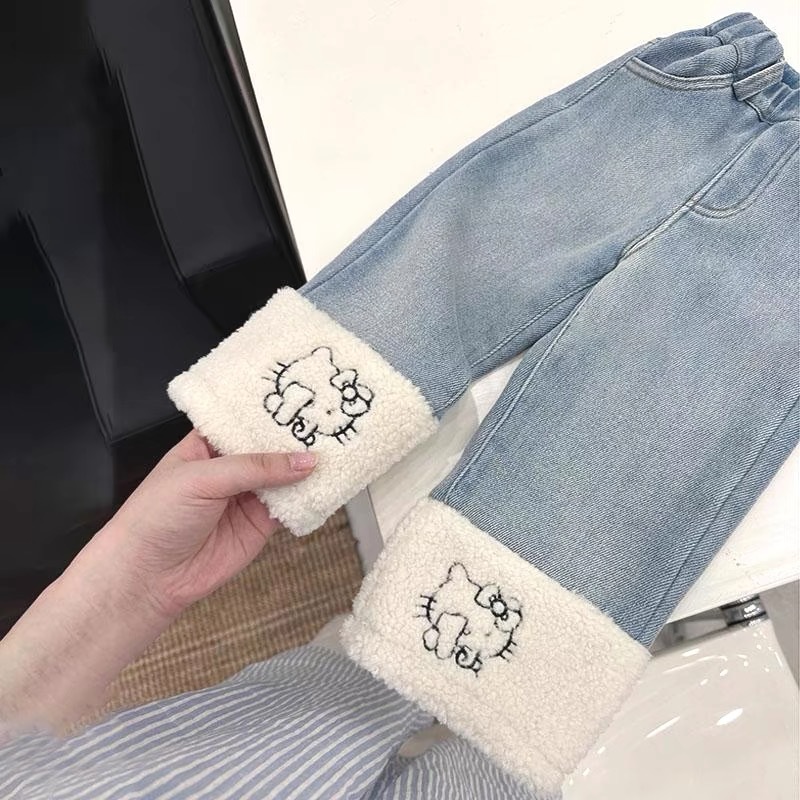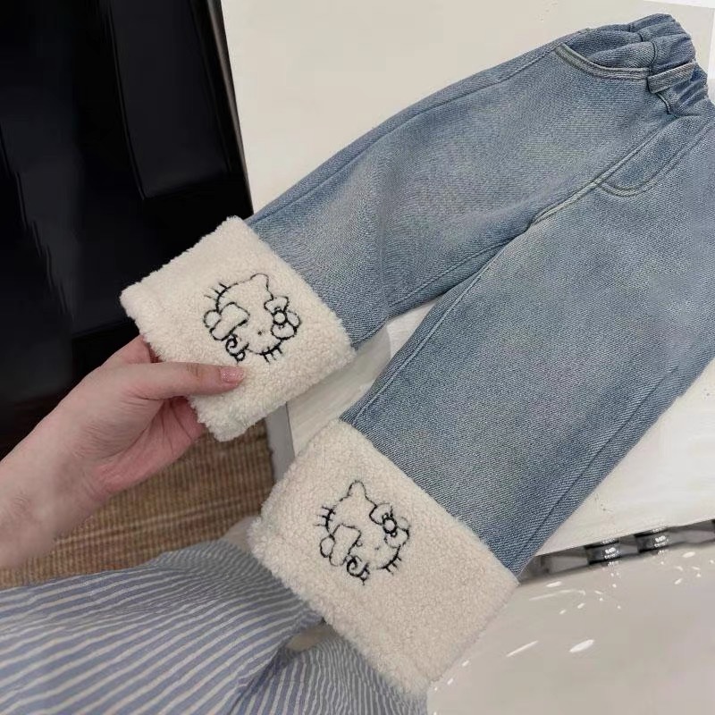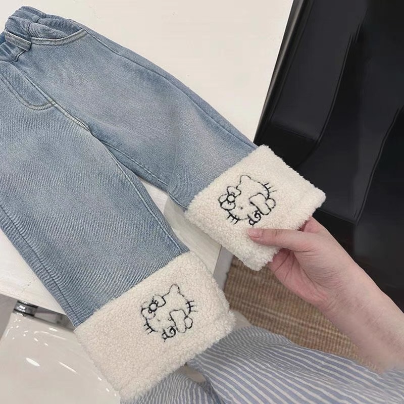 아동 의류 소녀 벨벳 청바지 25 가을, 겨울 귀여운 아기 바지 만화 양털 접합 어린이 스트레이트 바지스토어 가기