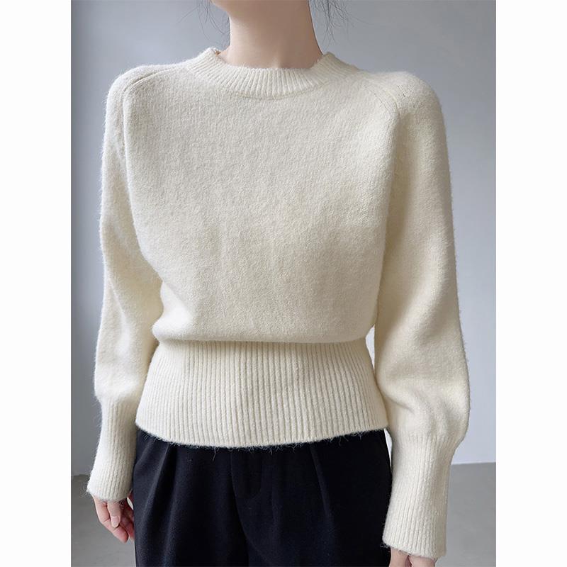 게으른 스타일 느슨한 둥근 목 흰색 스웨터 여성의 가을과 겨울 짧은 디자인 감각 풀오버 니트 베이스 셔츠 내부 탑