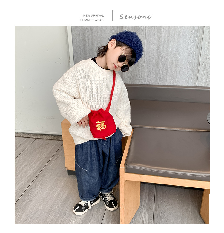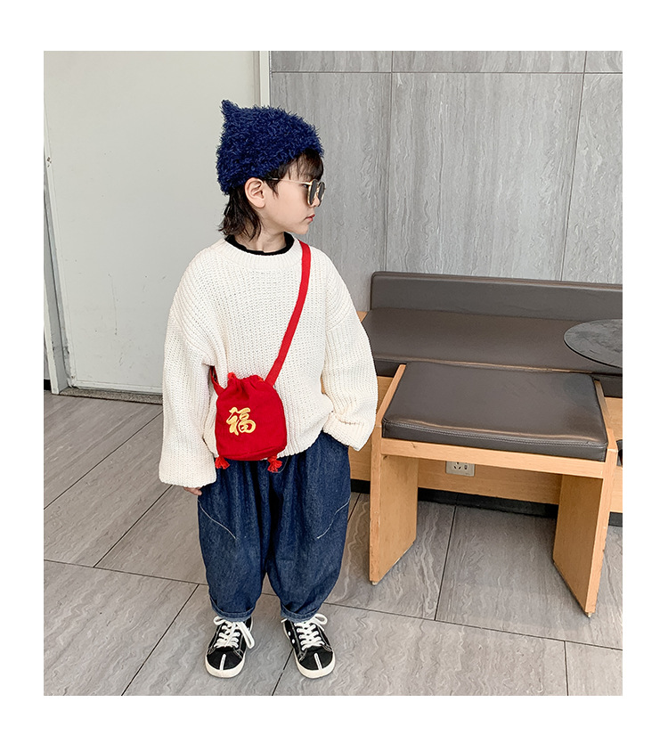 새해 선물 빨간 축복 가방 크로스 바디 백 자수 새해 축제 유아 아기 소년과 소녀 새해 동전 지갑 조수