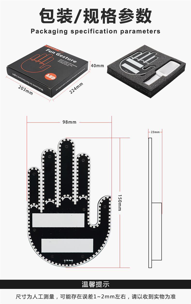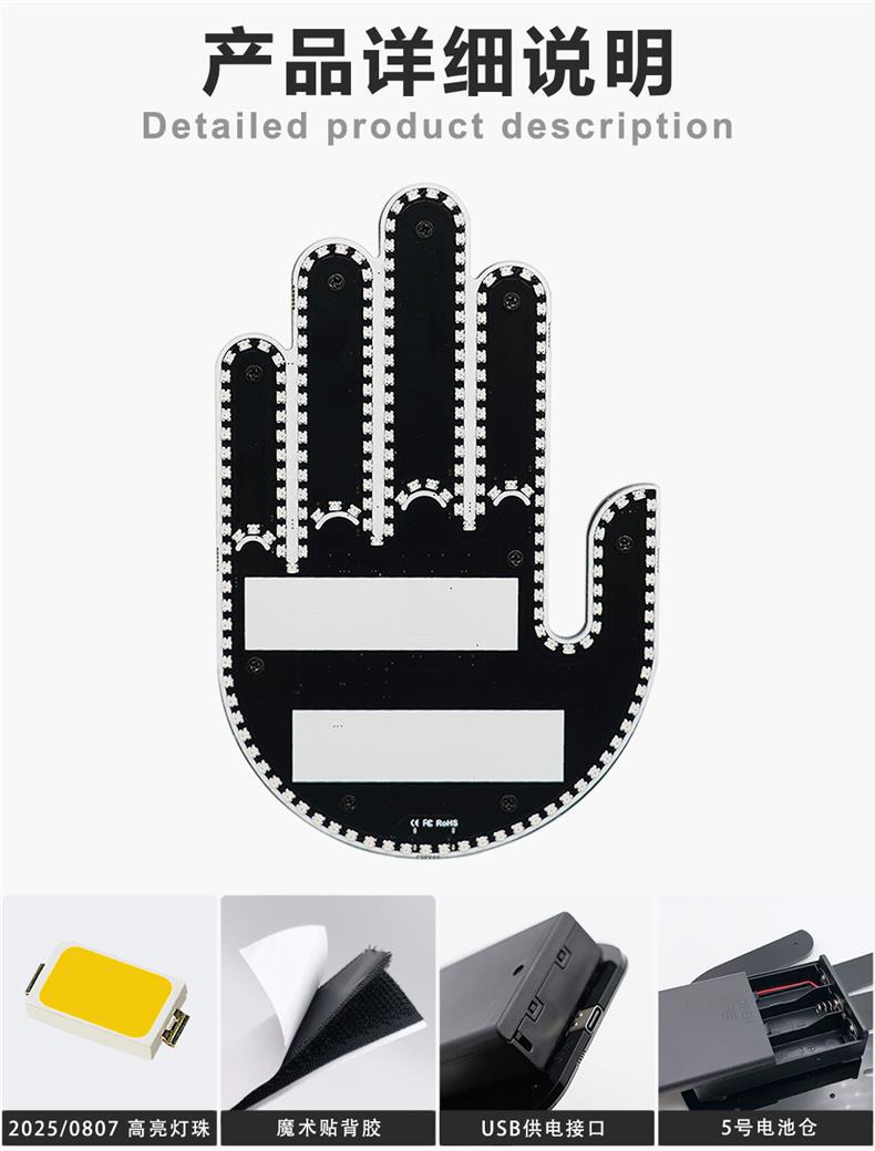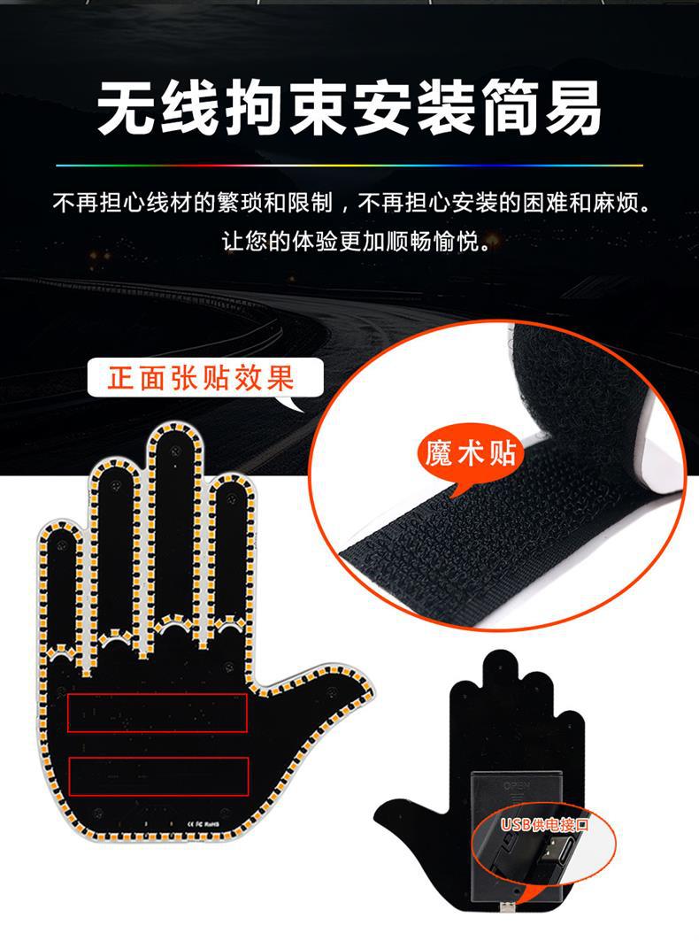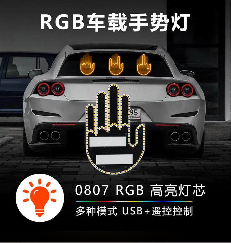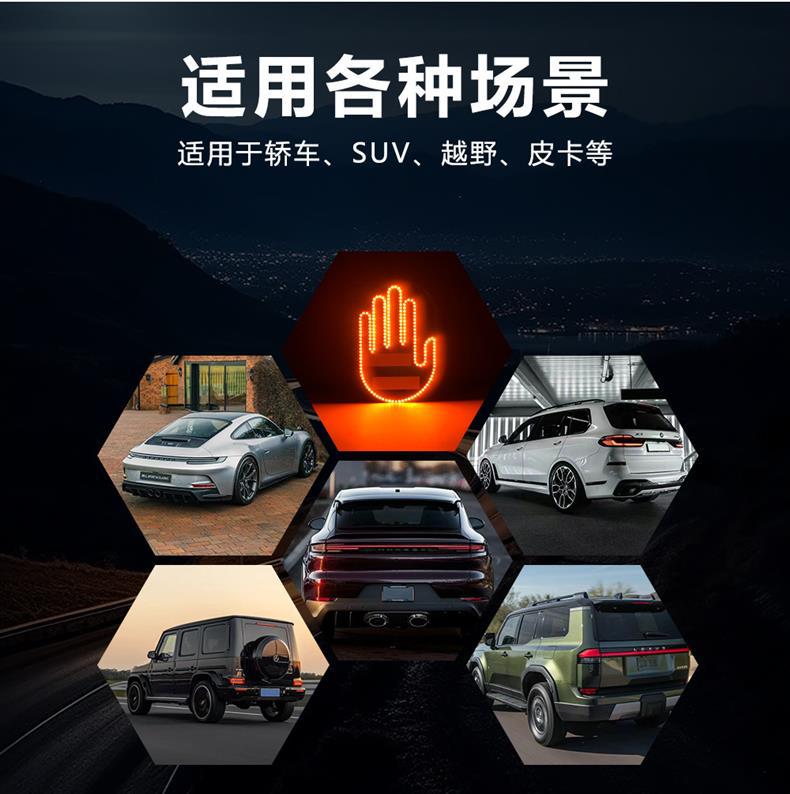 品名: 汽车男款手指灯手势灯车载多功能警示提示防追尾灯趣味交互手掌灯