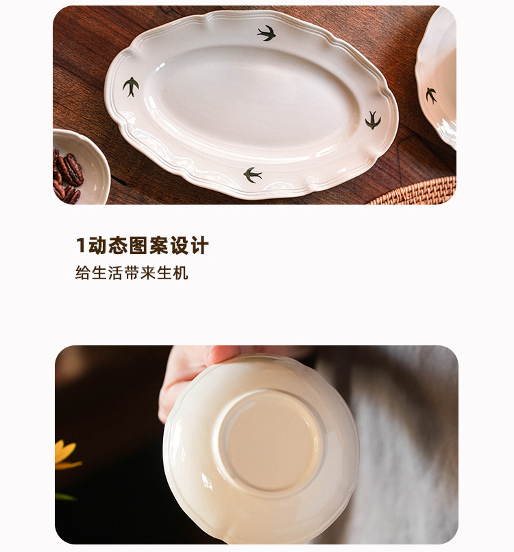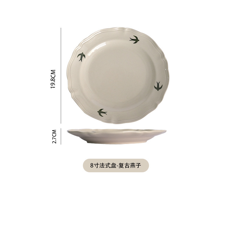 높은 가치의 디자인 인 스타일 복고풍 제비 프랑스 세라믹 식기 고품질 애프터눈 티 디저트 플레이트