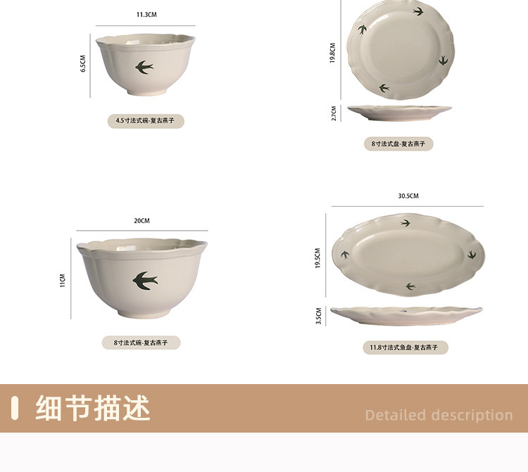 높은 가치의 디자인 인 스타일 복고풍 제비 프랑스 세라믹 식기 고품질 애프터눈 티 디저트 플레이트스토어 가기