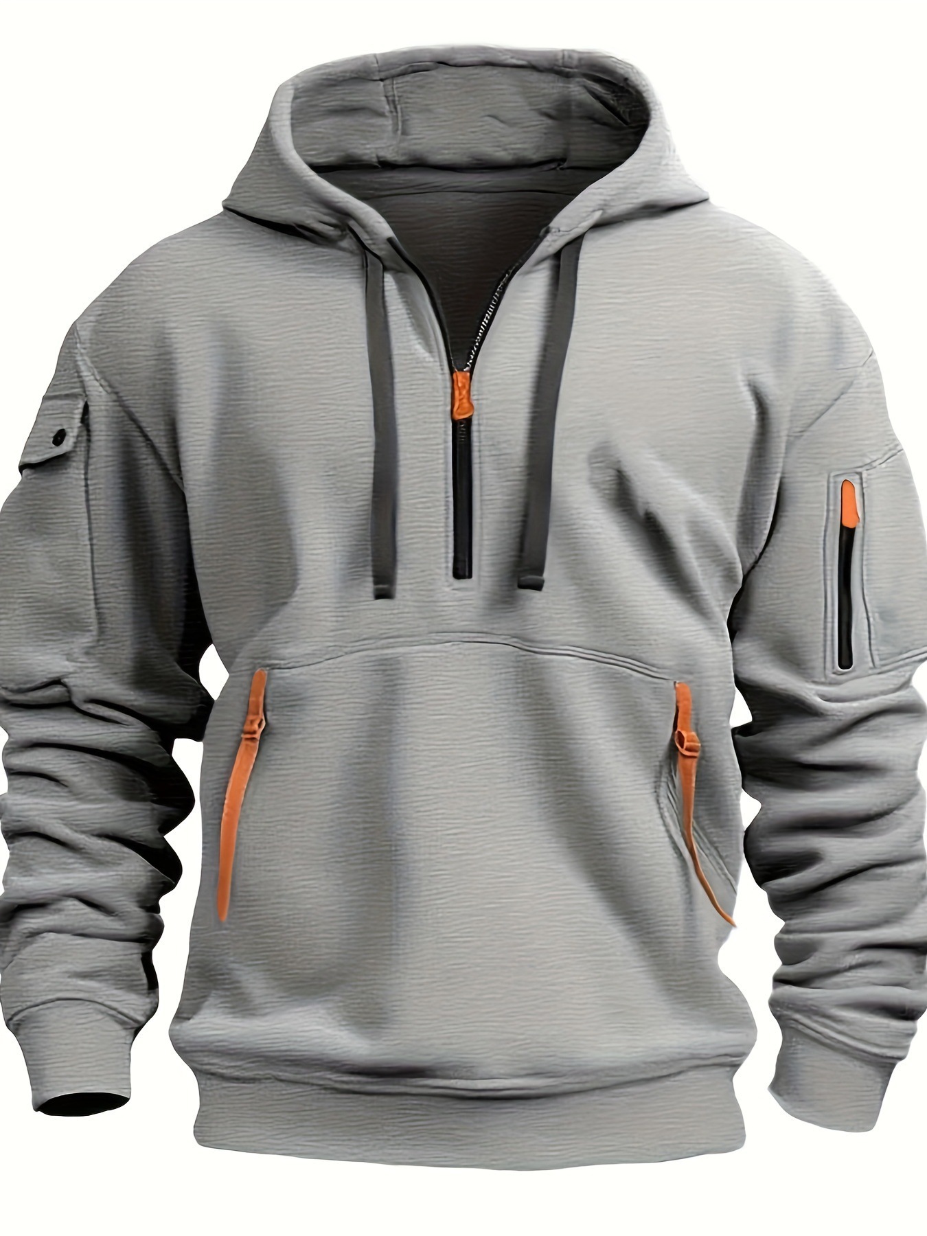 남자 캐주얼 하이킹 야외 스포츠 멀티 지퍼 스웨터 패션 패치 포켓 풀오버 후드