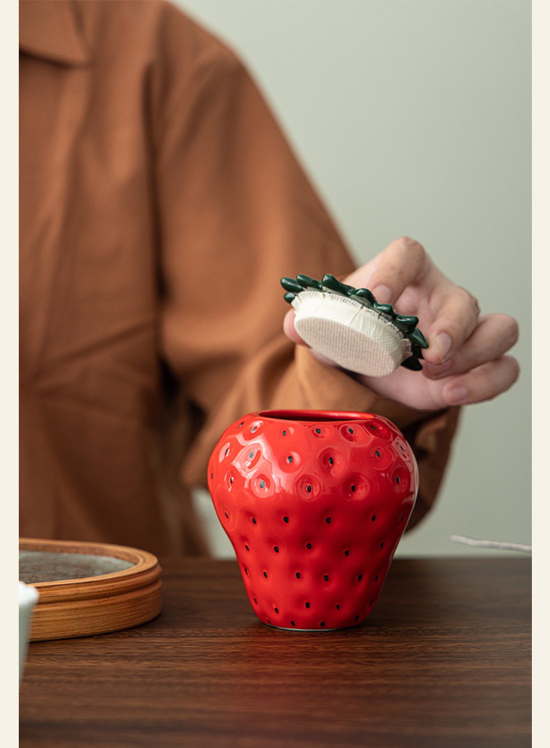 딸기 차 냄비 가정용 세라믹 수분 방지 차 냄비 스몰 사이즈 창조적 인 귀여운 밀봉 된 냄비 스몰 사이즈 냄비 로고