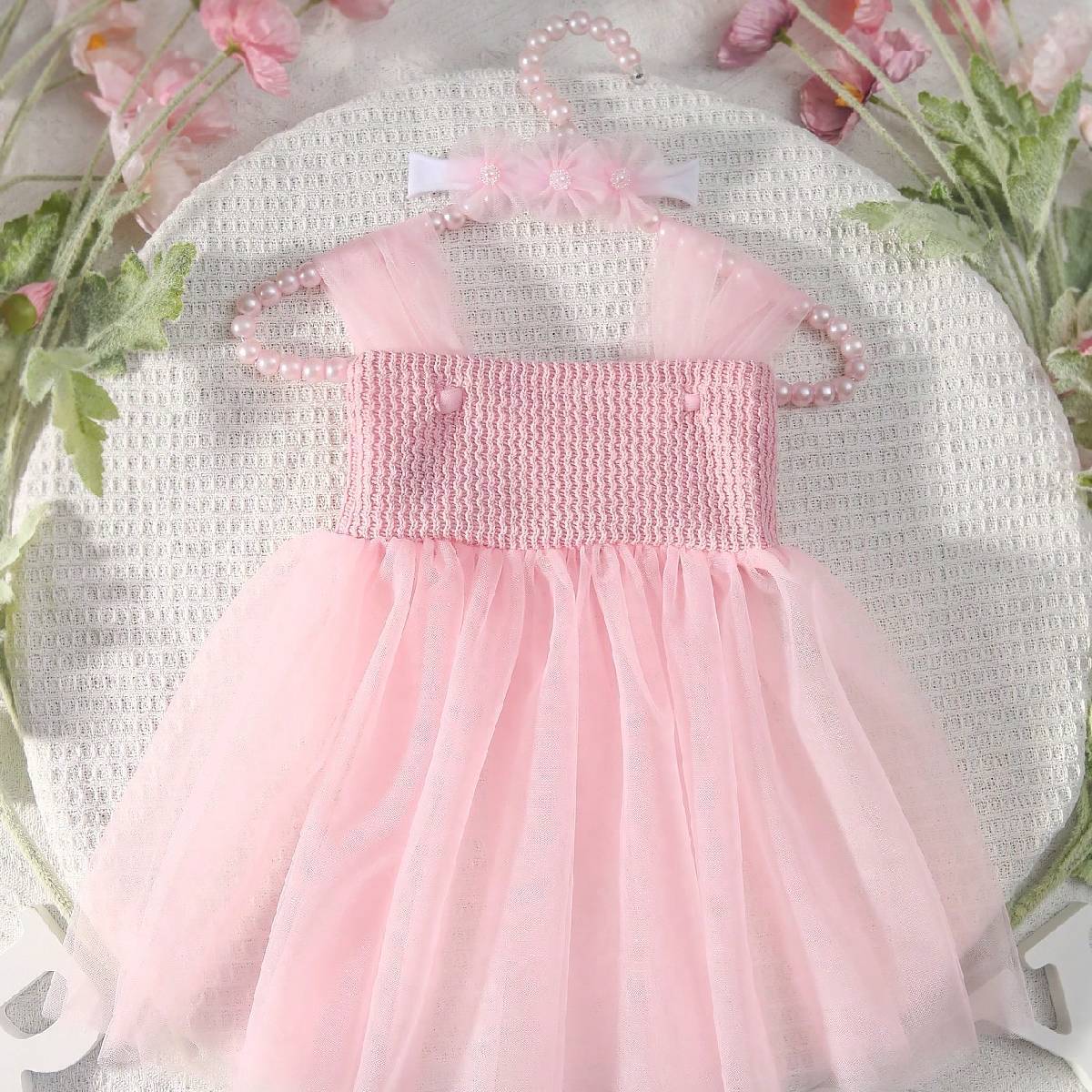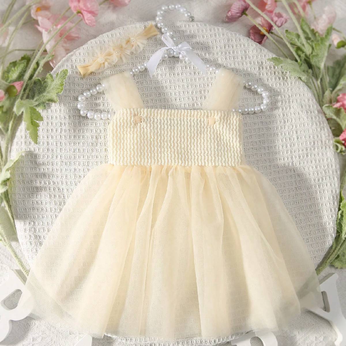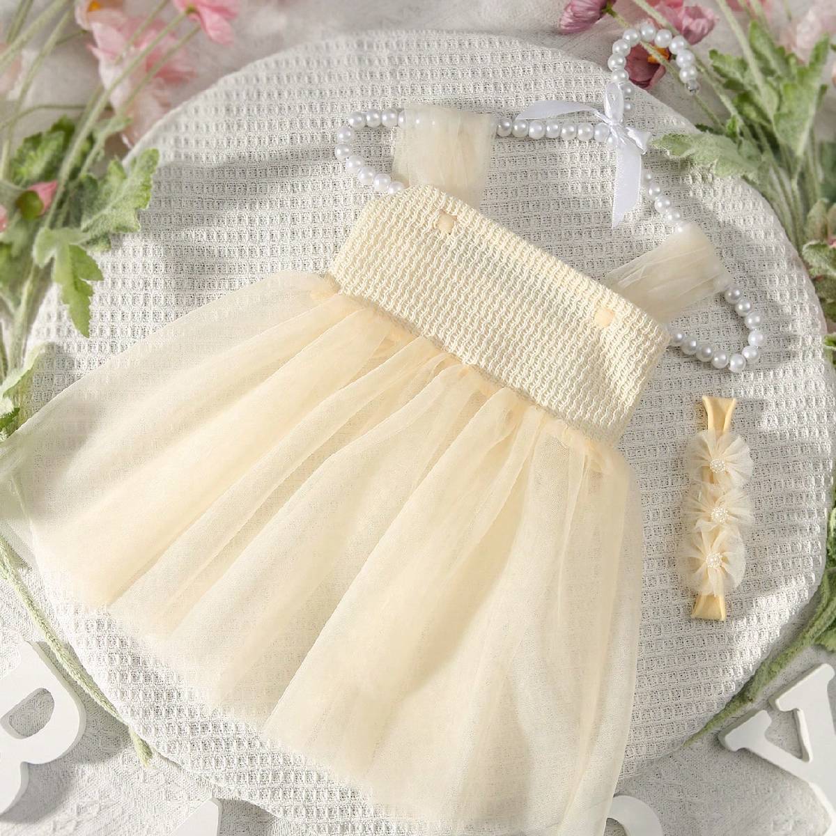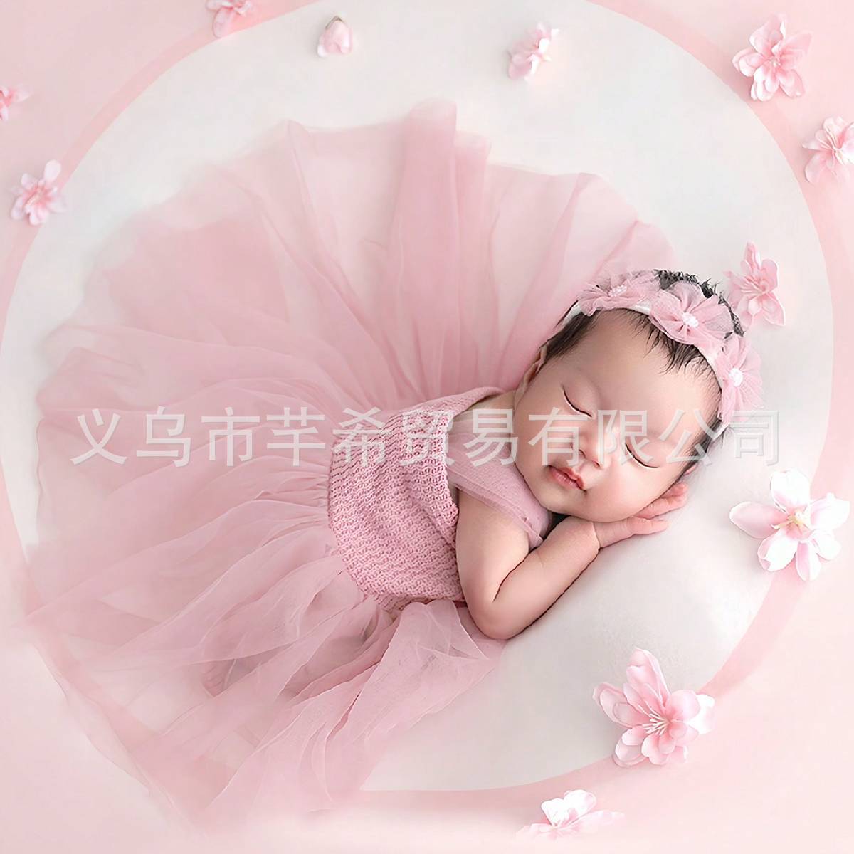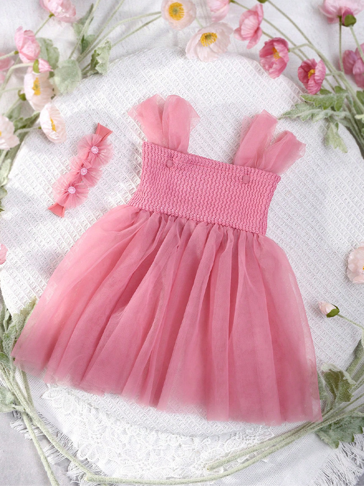 국경 간 신생아 소녀 보름달 백일 사진 소품 메쉬 슬링 원피스 헤어 밴드 세트