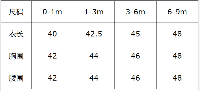 尺码 0-1m 1-3m 3-6m 6-9m