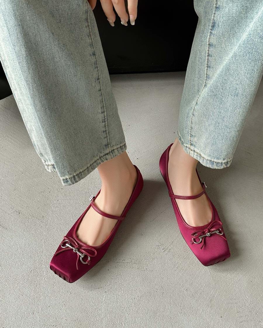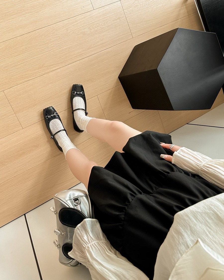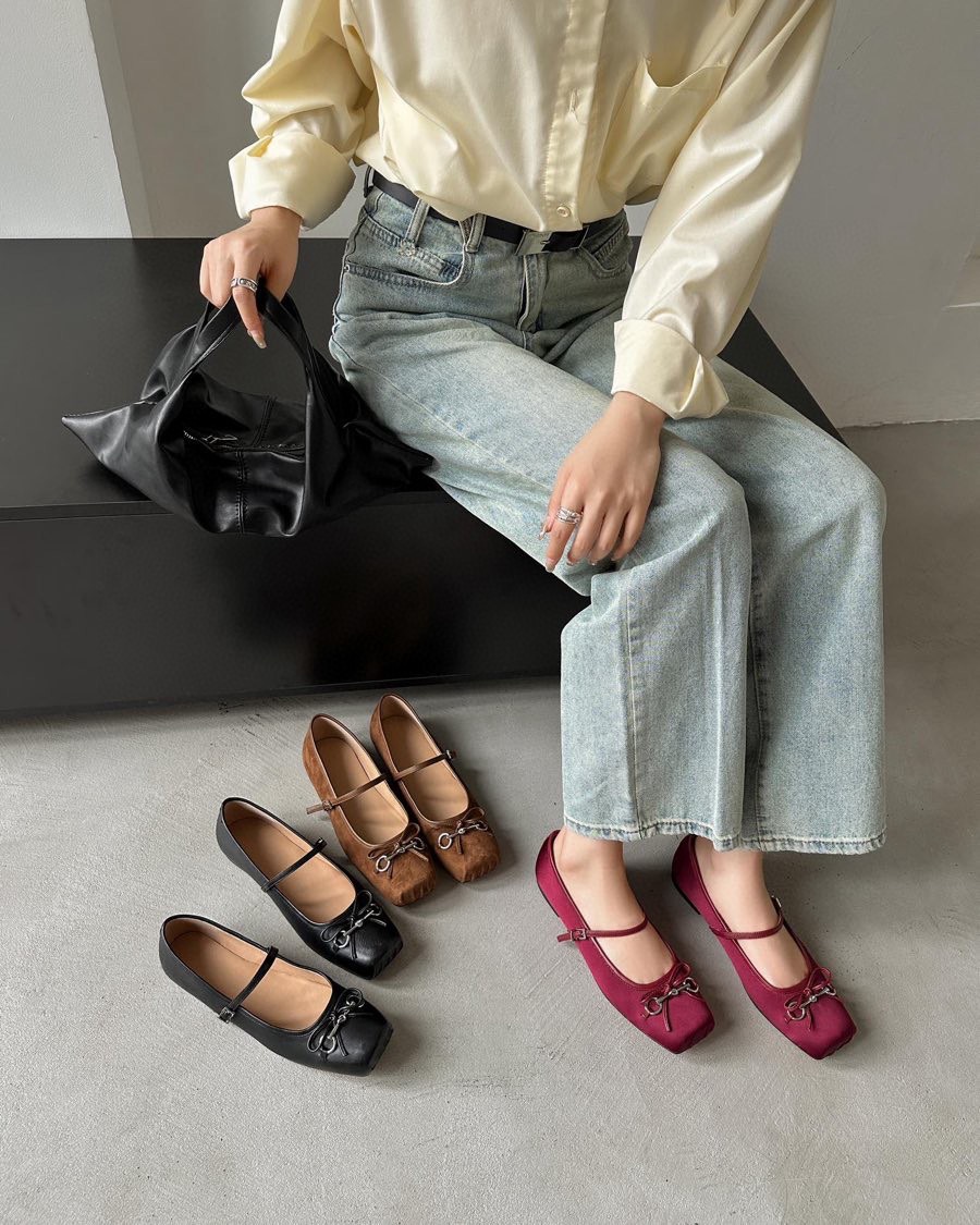 가을 새로운 프랑스 스타일 로우 힐 스퀘어 토 싱글 신발 플랫 바닥 얕은 입 여성용 우아한 정품 가죽 돼지 코 발레 신발