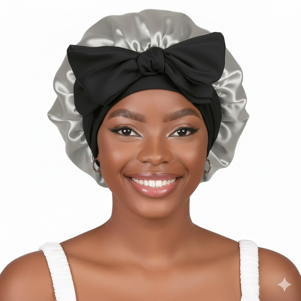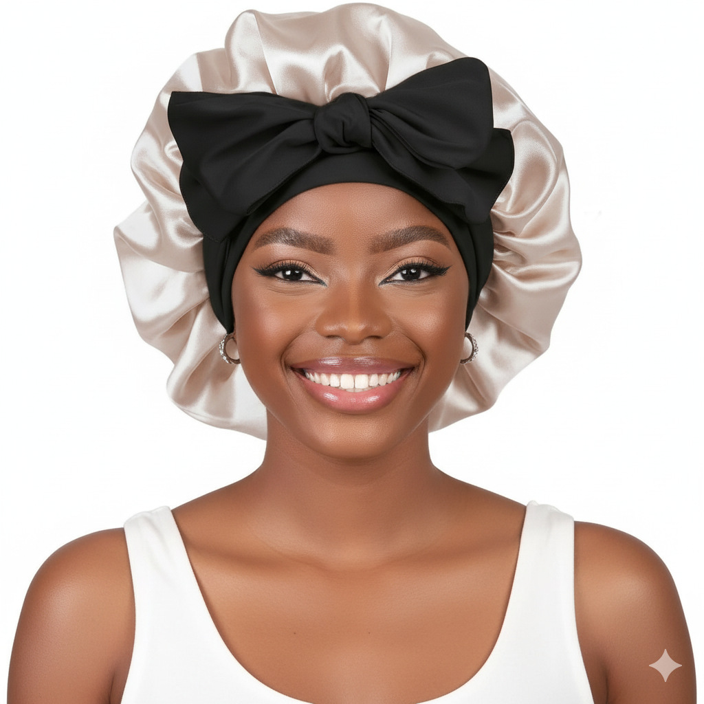 아마존 국경 간 레이드 리본 라운드 햇 보우 대형 뷰티 헤어 케어 문 모자 여성 터번 나이트캡