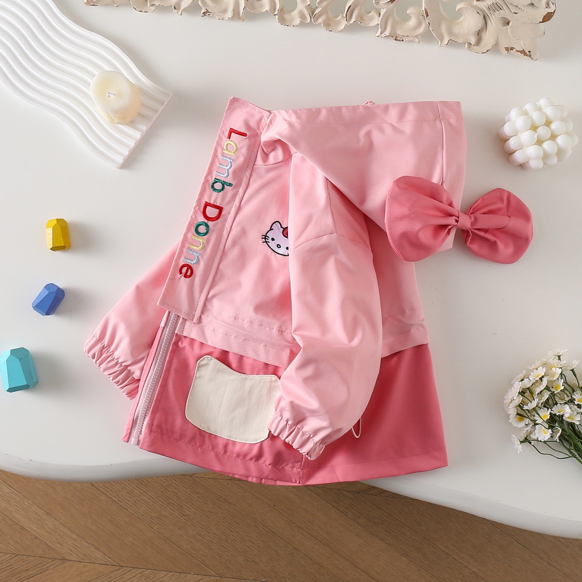 6650 봄과 가을 새로운 대학 스타일 올 매치 편안한 소녀 느슨한 토끼 만화 그림 긴 소매 코트