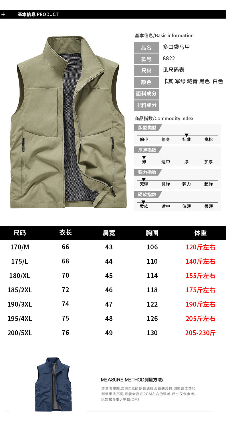 공장 직접 남성 양복 조끼 봄과 가을 툴링 멀티 포켓 플러스 사이즈 조끼 방수 빠른 건조 양복 조끼 8822