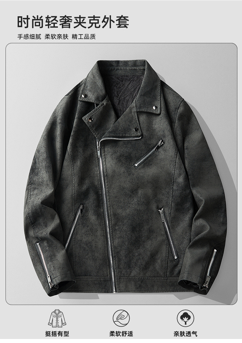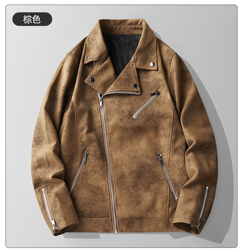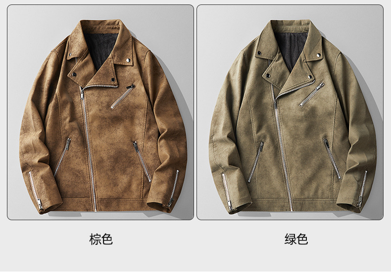 트렌디 한 잘 생긴 가죽 자켓 남성용 슬림 핏 오브리크 지퍼 가죽 자켓 바이커 의류 새로운 가을과 겨울 코트 국경 대외 무역스토어 가기