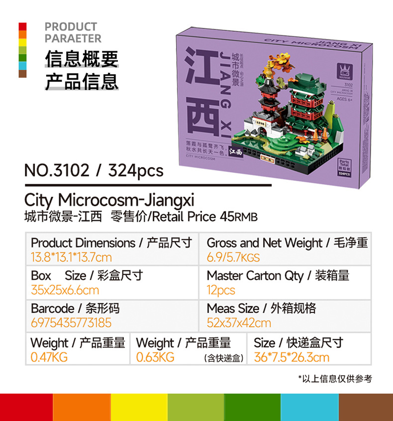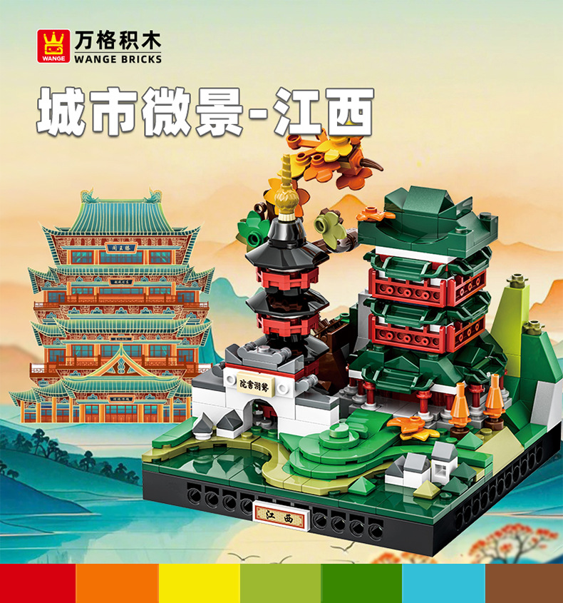 Wange 작은 입자 교육 장난감 조립 어린이 선물 6-12 세 중국 빌딩 블록 국가 트렌드 도시 마이크로 풍경 Jiangxi