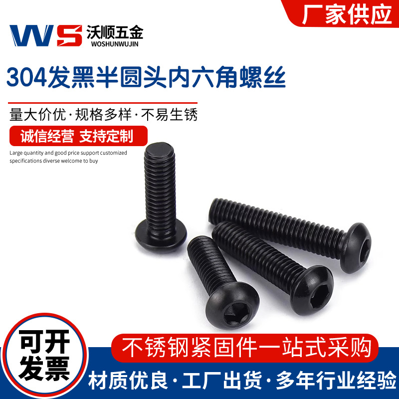 304 블랙 스테인레스 스틸 라운드 헤드 육각형 소켓 헤드 스크류 ISO7380 블랙 플랫 라운드 헤드 선반 스크류 M3-M12스토어 가기