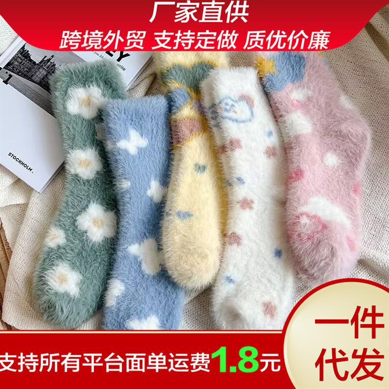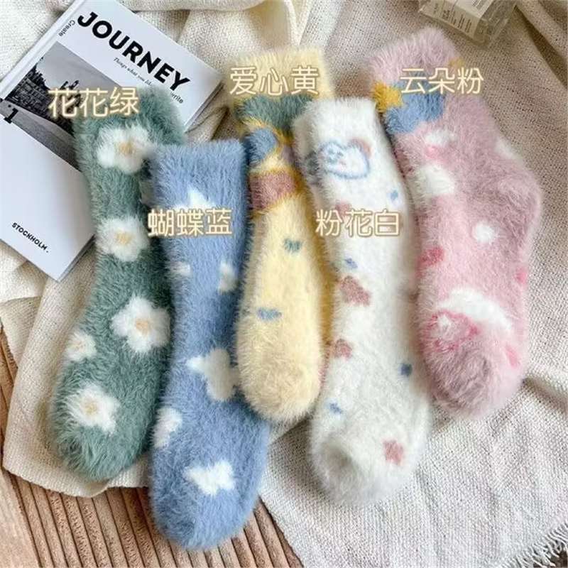 새로운 '나비 흰 구름' 플러시 만화 밍크 벨벳 따뜻한 부드러운 통화 양말 튜브 탈취제 양말스토어 가기