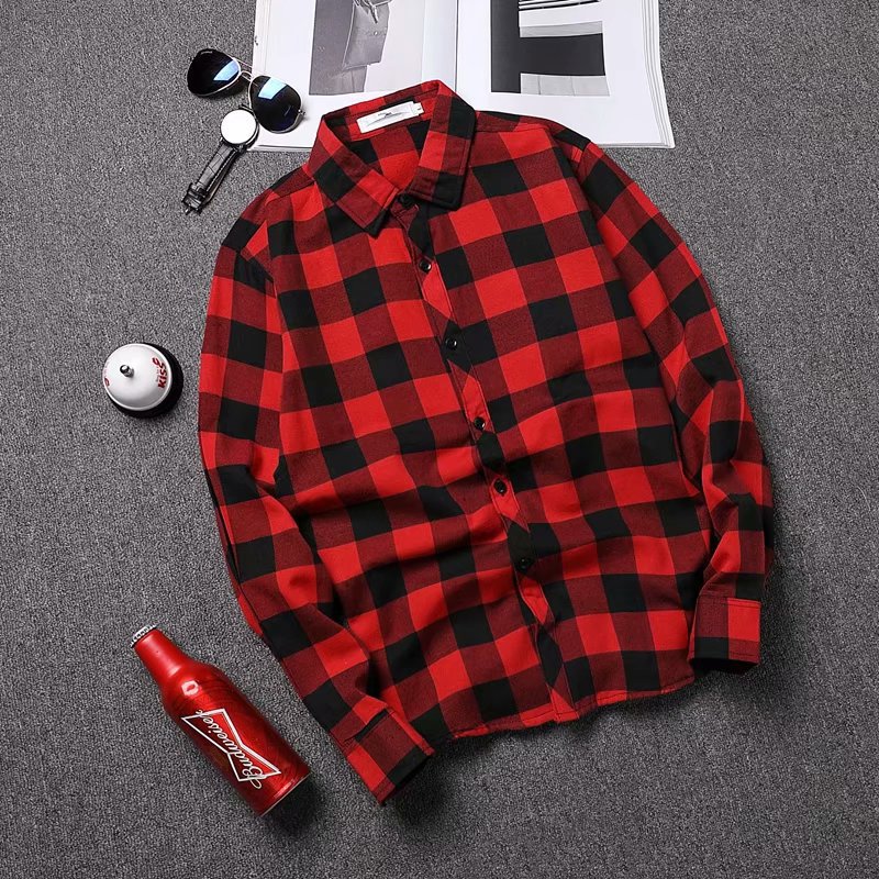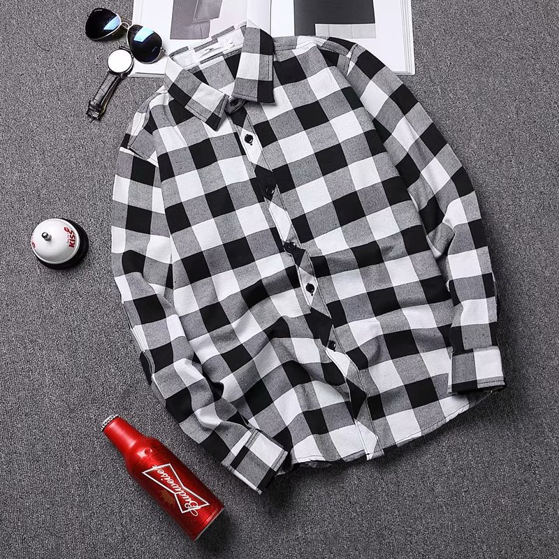 가을과 겨울 새로운 홍콩 스타일 남성 격자 무늬 셔츠 청소년 예술 긴팔 재킷 한국 유행 학생 캐주얼 셔츠스토어 가기
